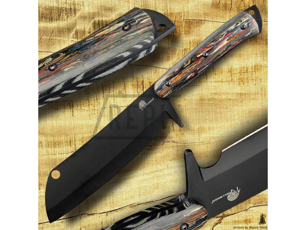 Mačeta Dellinger Ravenage s rukojetí z barevné Micarty je ručně kovaná a zpracovaná z oceli D2. Čepel mačety má povrchovou úpravu black stonewashed. Využít ji můžete jak v kuchyni na krájení a sekání zeleniny, masa a kostí, tak pro práce venku jako je kácení stromů, úprava zahrady nebo příprava dřeva pro oheň. Je to silný nástroj s dlouhou a širokou čepelí, což umožňuje provádět silné řezy a snadno pronikat do husté vegetace. Mačeta Dellinger Ravenage má na špičce čepele zaoblený konec, což umožňuje provádět sekání s rotačním pohybem.