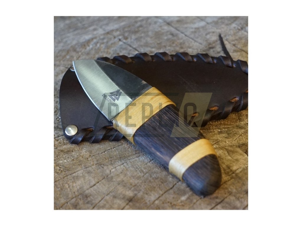 Bojový nůž Dellinger Ötzi je ideální nůž pro každodenní nošení. Tento nůž vznikl podle pazourku, který byl nalezen u pravěkého muže jménem Ötzi. Čepel tohoto nože je vyrobena z nástrojářské oceli D2. Tato ocel je velmi houževnatá, tvrdá a odolná. Nůž má ergonomickou rukojeť ze dřeva Wenge s omotem z konopného provazu. Tento praktický a netradiční lovecký nůž poskytuje spolehlivý výkon a usnadňuje širokou škálu pracovních úkolů. Nůž je dodávaný v koženém pouzdru. Pouzdro je vyrobené z kvalitní hovězí kůže.