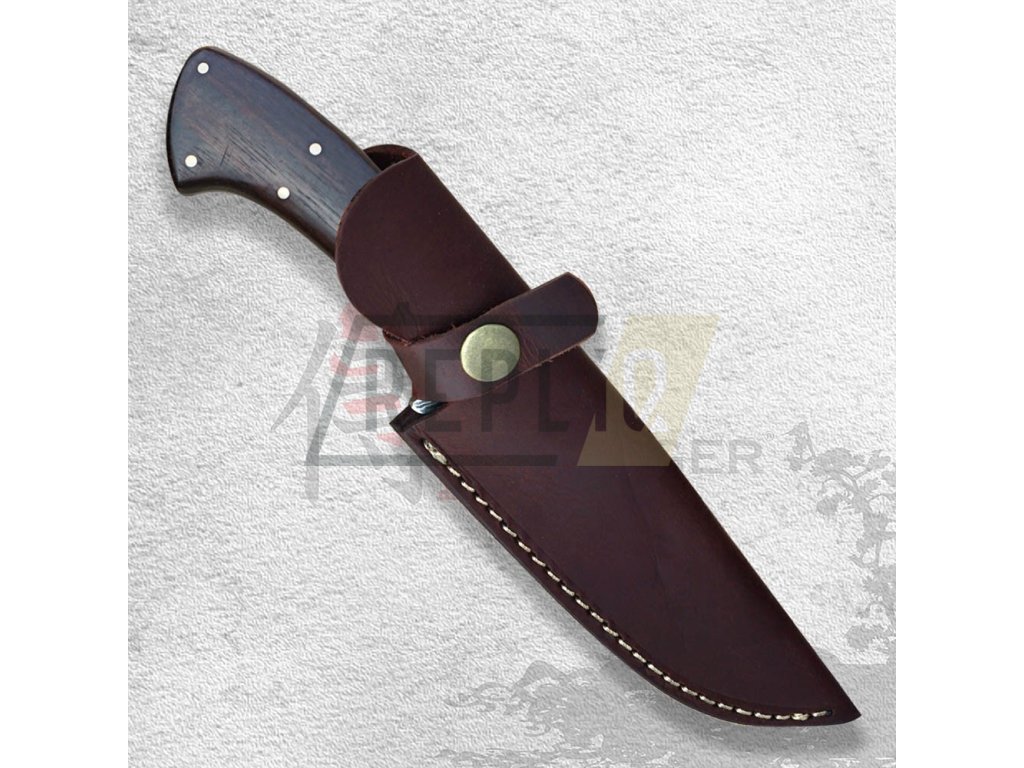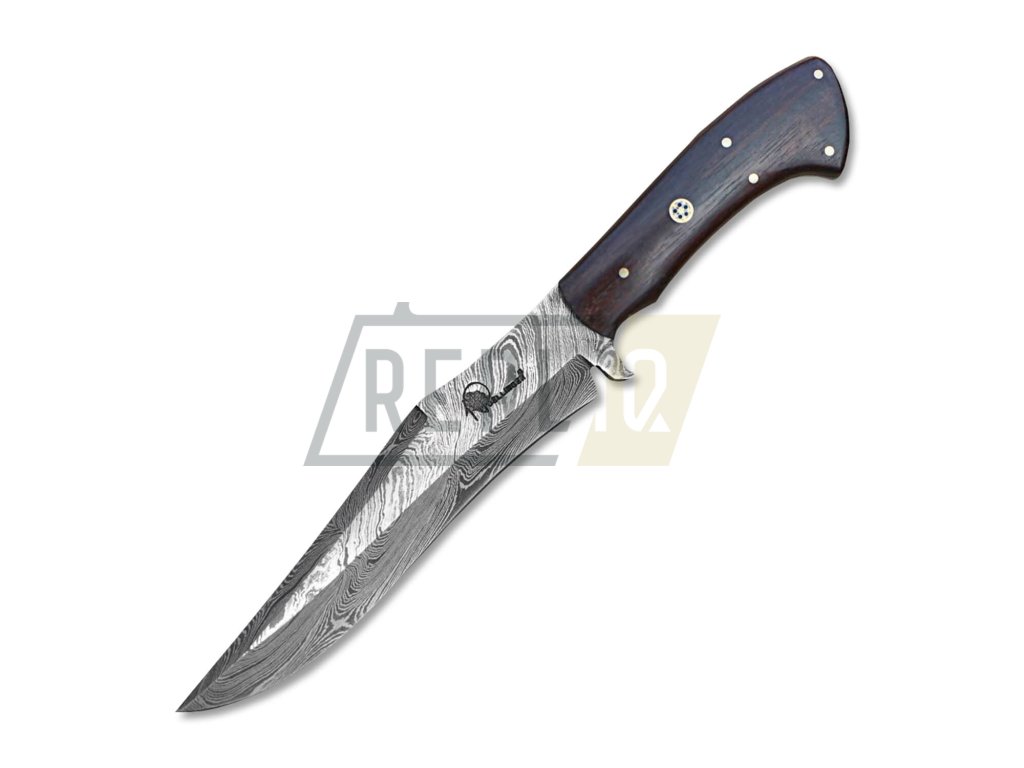 Čepel tohoto loveckého nože je vyrobena z damaškové uhlíkové oceli, kdy vyšší obsah uhlíku přispívá k její větší tvrdosti a odolnosti materiálu, snáze se brousí. Nůž není nerezový, proto je potřeba o čepel více pečovat - pravidelná údržba, včetně vytření do sucha po použití a následném naolejování - tím minimalizujete riziko koroze. Rukojeť je vyrobená ze dřeva Cocobolo. To je druh palisandru rostoucího v tropickém podnebí. Jde o tvrdé dřevo červeno-hnědé barvy s černým rýhováním. Rukojeti hodně vydrží a ještě vypadají krásně. Nůž je dodávaný s koženým pouzdrem.