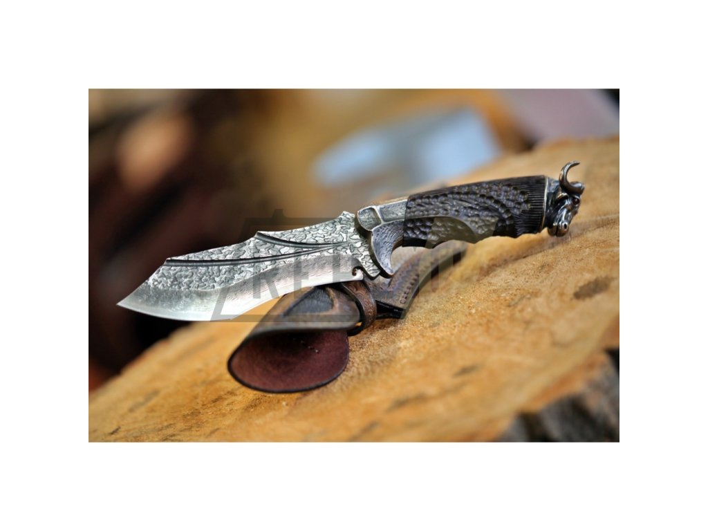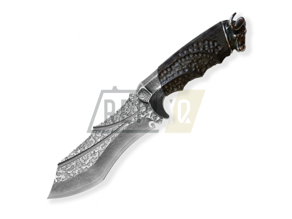 Dellinger OKSE, robustní damaškový nůž s hlavou býka, mahagon + Sleva 200,- Kč s kódem "DELI200"