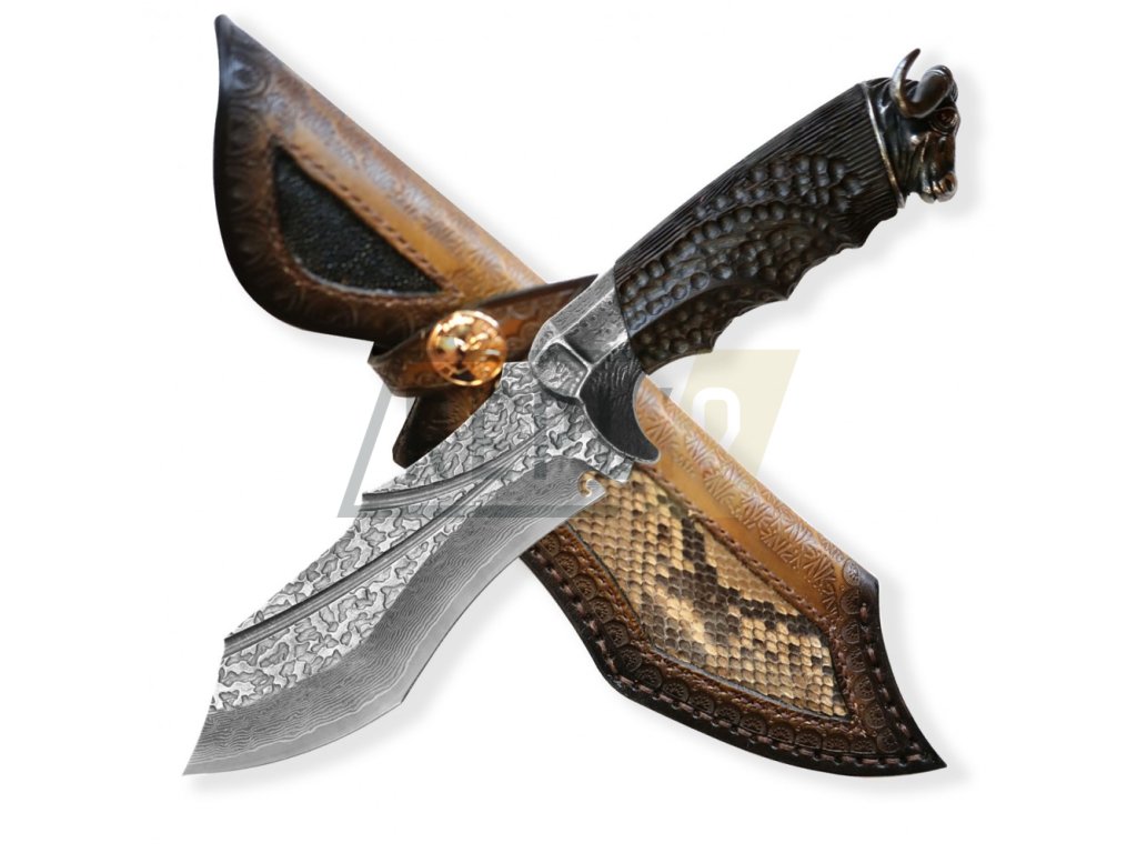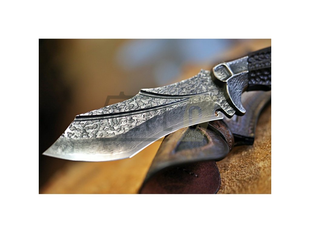Upozornění Každý nůž je vyroben z přírodních materiálů. Každý kus oceli je originální a nenapodobitelný, proto Váš nůž nemusí vypadat přesně tak jak na fotografii. Nůž, který obdržíte, bude stejně kvalitní a detailně opracovaný, ale může se mírně lišit. |