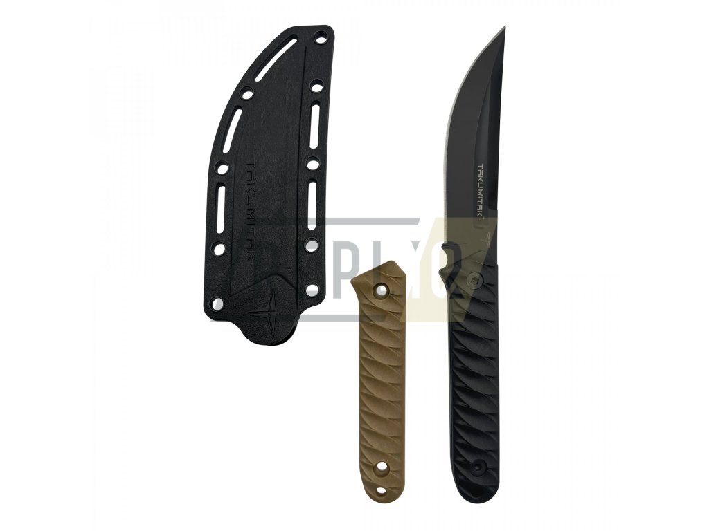 Společnost Takumitak s čínskými kořeny, nyní sídlící v kalifornském Ontariu, se již řádku let specializuje na výrobu nožů s robustní Full-Tang čepelí všech možných tvarů a velikostí. Jejich cílem je nabídnout co nejširší sortiment nožů, jenž splní požadavky každého náročného zájemce.Tento nůž se může chlubit 3,86mm tlustou čepelí z černěné nerezové oceli 3cr13. Obě dodávané rukojeti (černá a písková) jsou zhotoveny z vyztuženého nylonu FRN. Ze stejného materiálu je vyrobeno i spolehlivé pouzdro se sponou na opasek, kompatibilní i se systémem MOLLE.