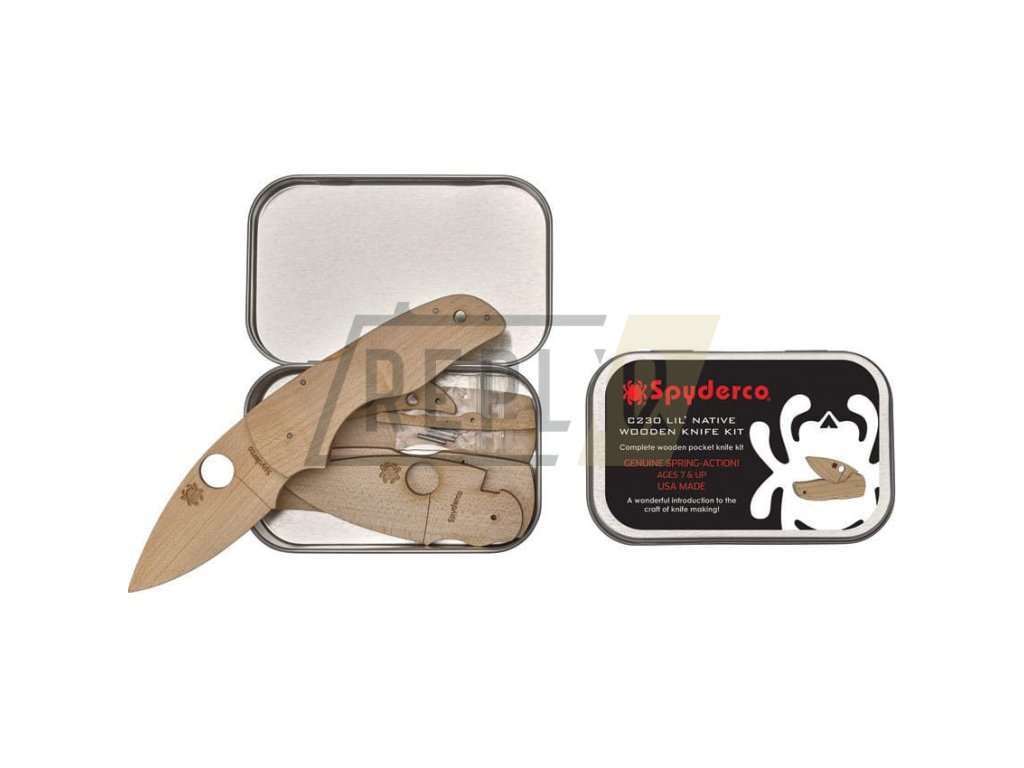 Dárková sada na výrobu dřevěného nožíku Lil Native od značky SPYDERCO. Perfektní projekt pro rodiče s dětmi od 7 let. Složený nožík má tupé ostří, ale je možné ho zavírat. Uložené v plechové krabičce.