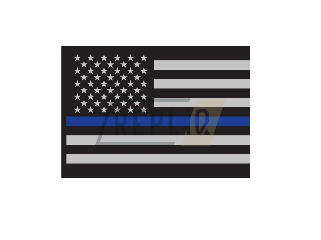 Samolepka vlajky Spojených států amerických, na které je jeden pruh modrý. Toto jednoduché, nenápadné provedení vyjadřuje podporu a respekt příslušníkům Policie. Rozměry nálepky - 76 x 108 mm.