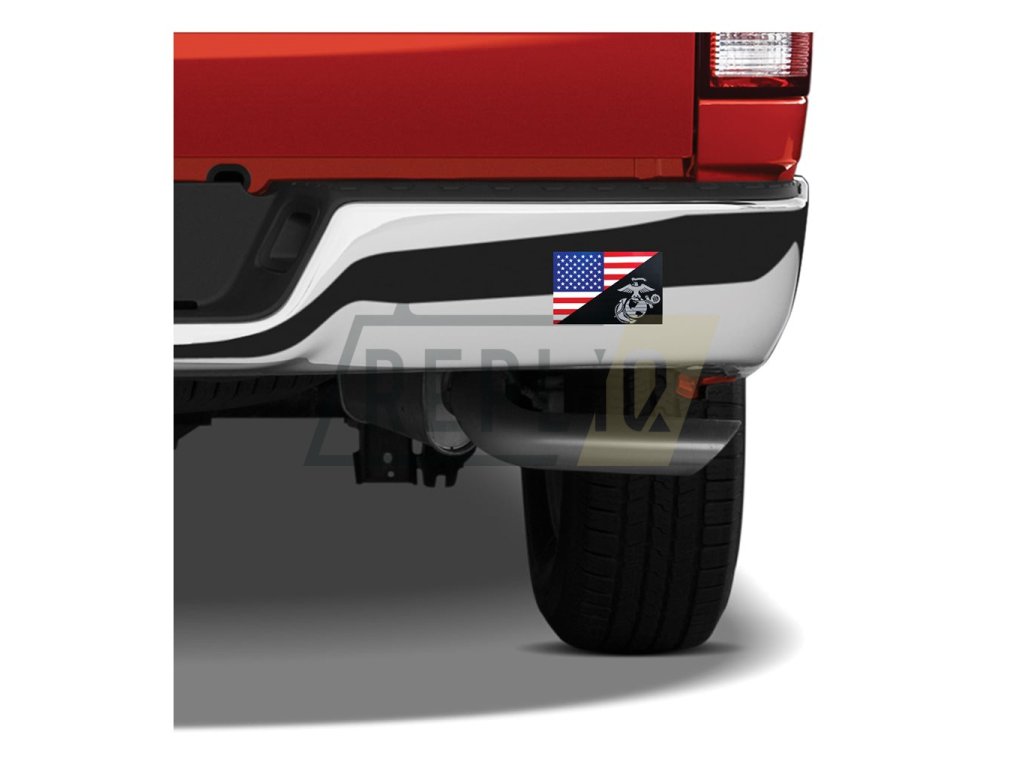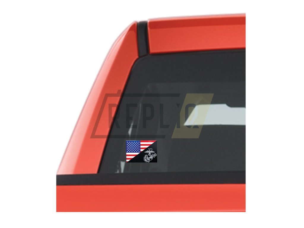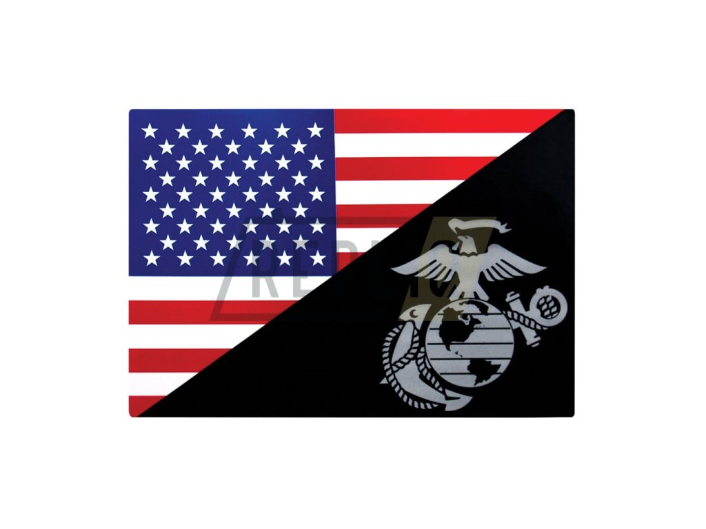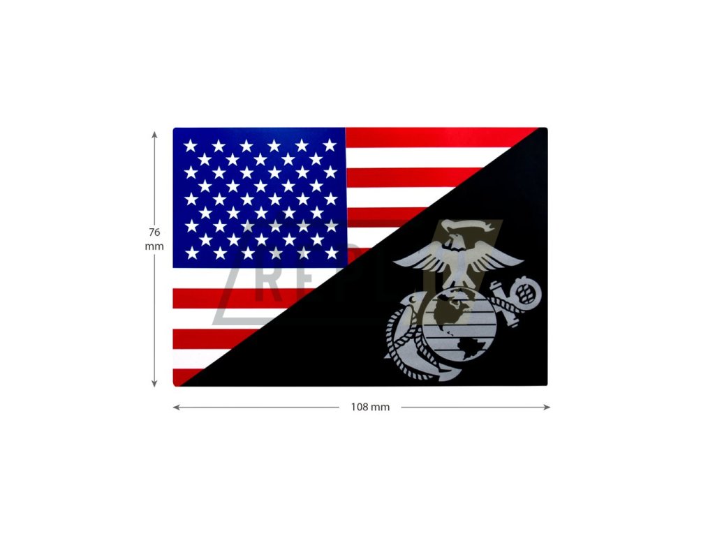 Nálepka s částečným vyobrazením vlajky USA a šedým znakem USMC.