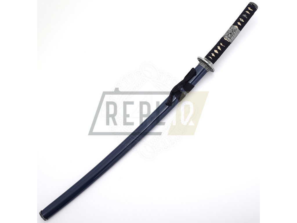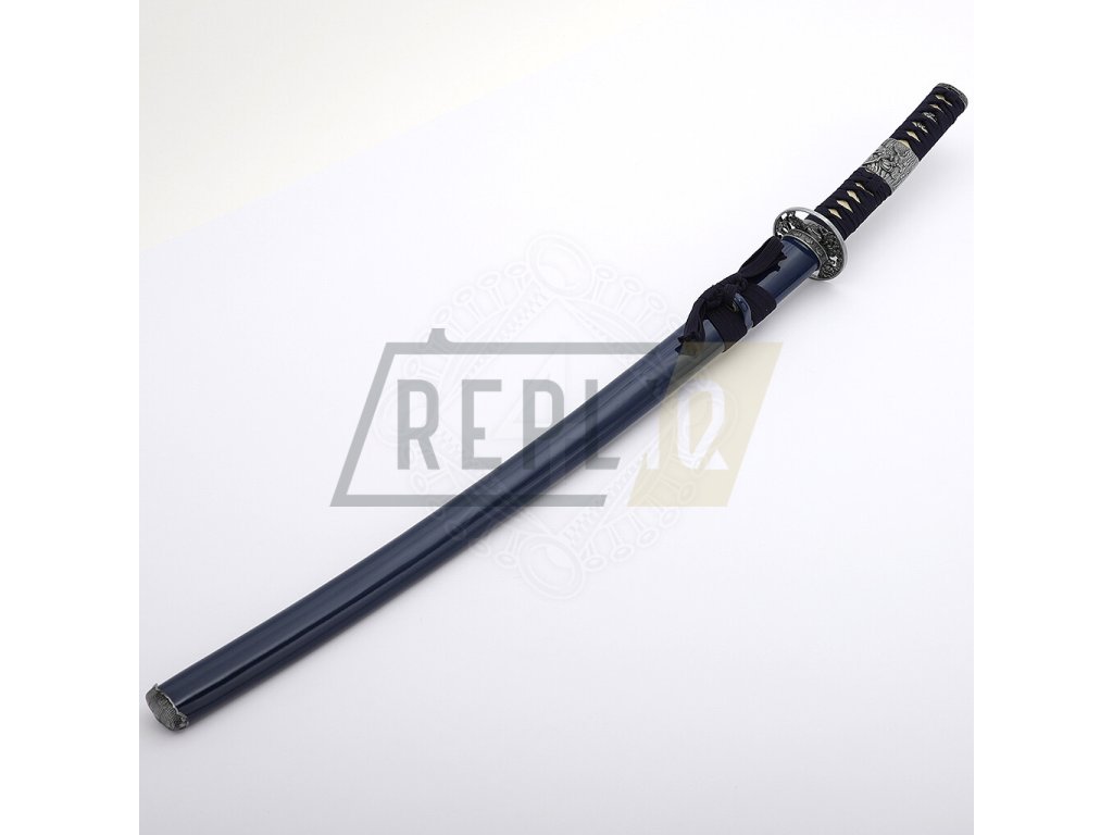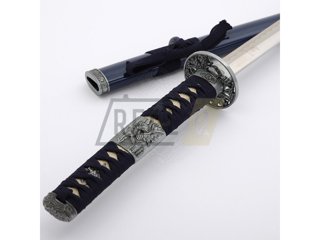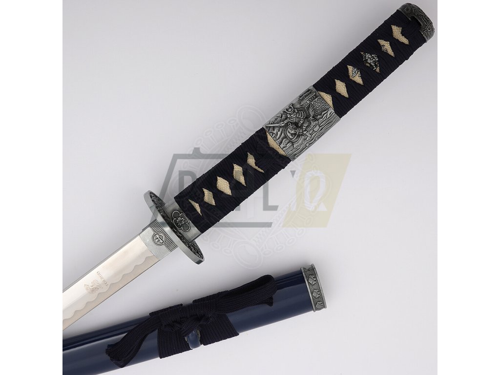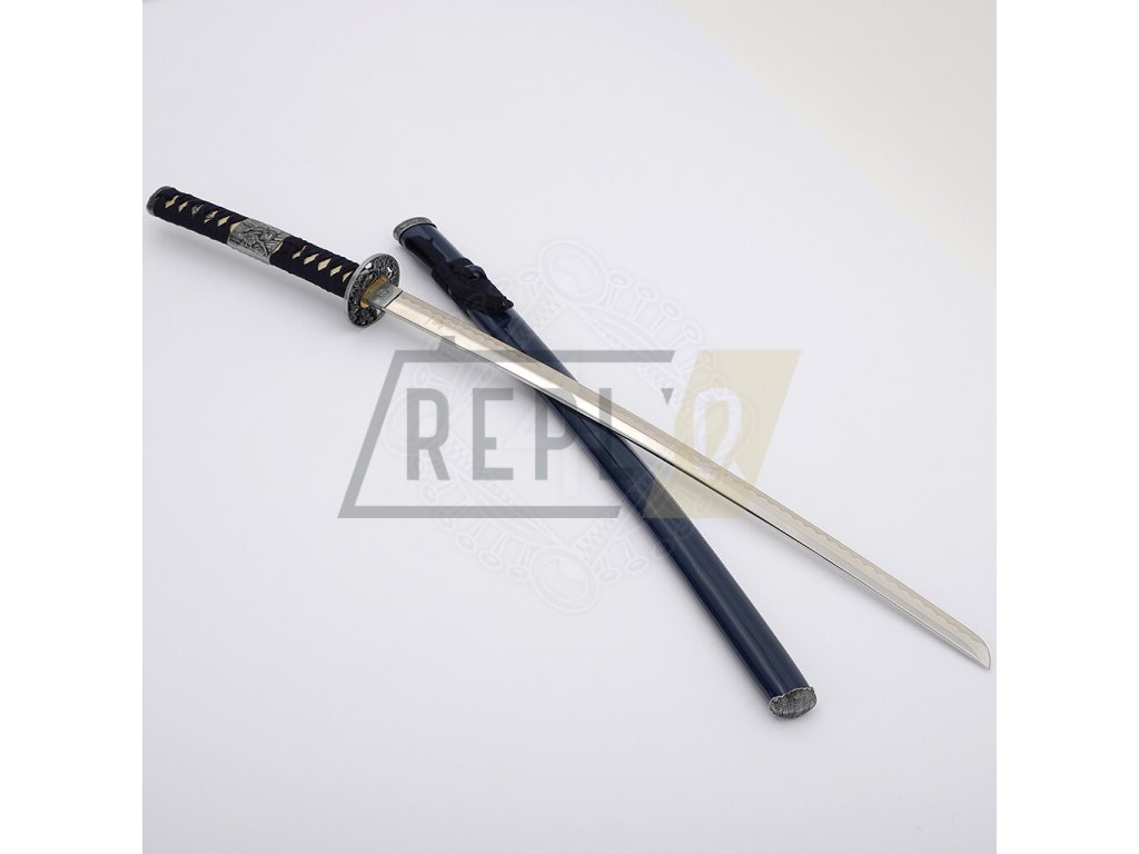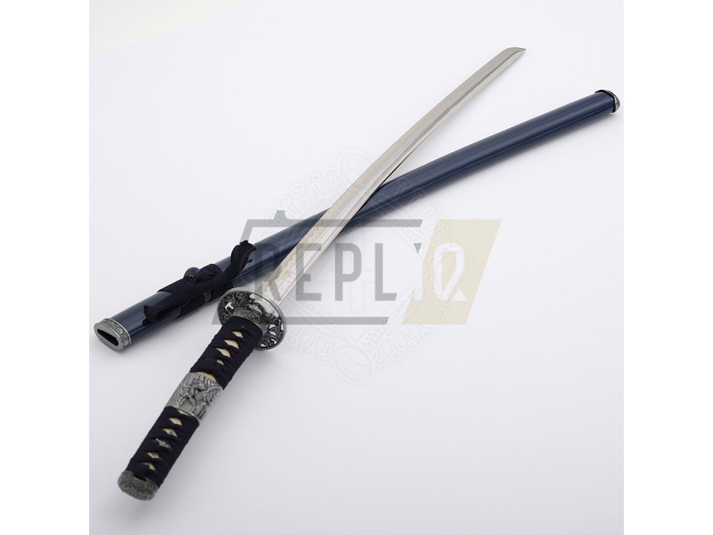 Katana tmavě modrá saya, cuba a kašira starostříbroCelková délka cca 998mm