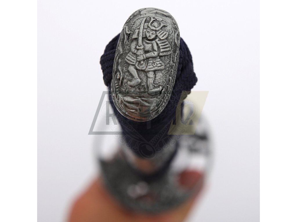 Kashira ze Zamaku znázorňuje Samuraje, jak se ohání mečem na bojišti.