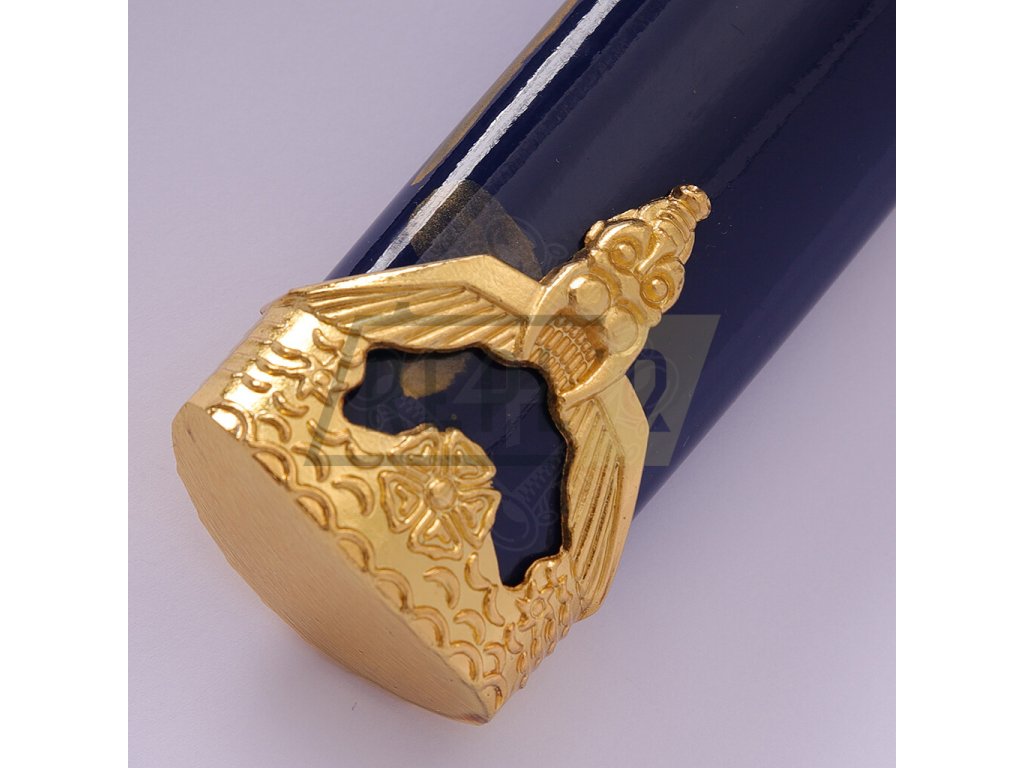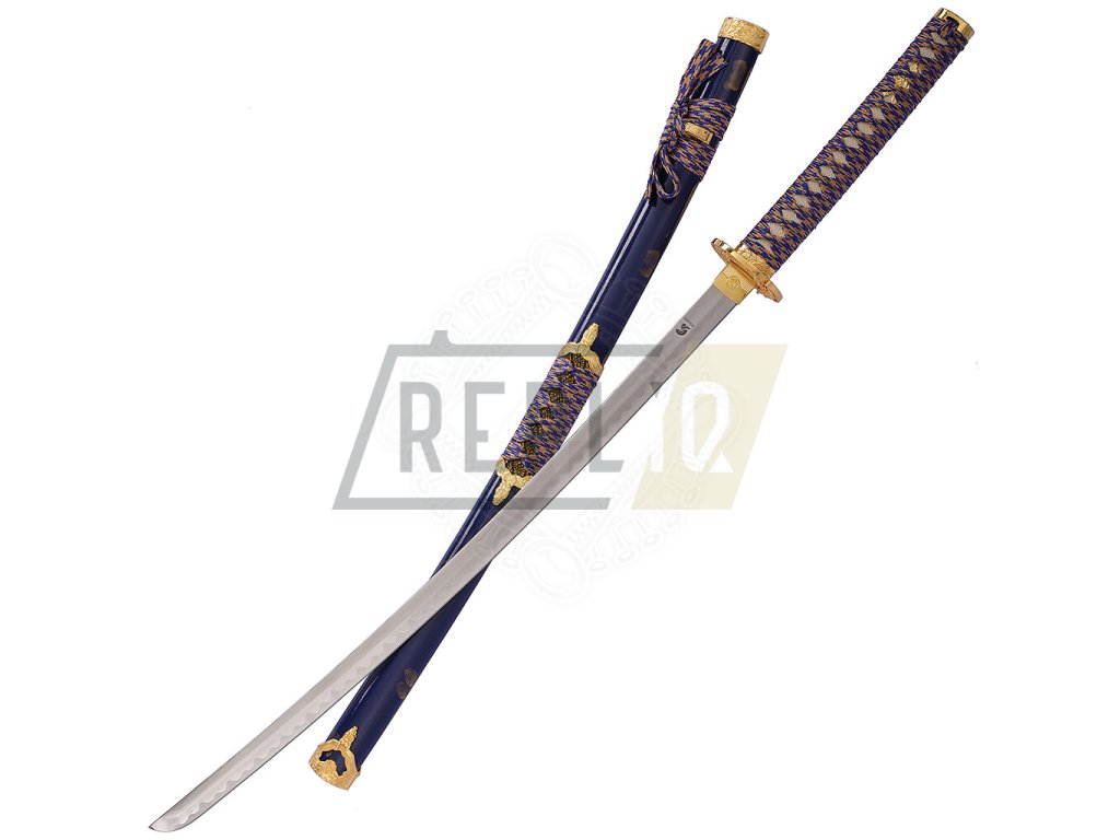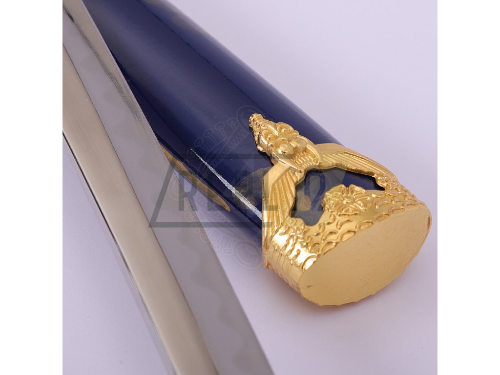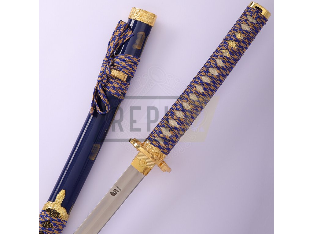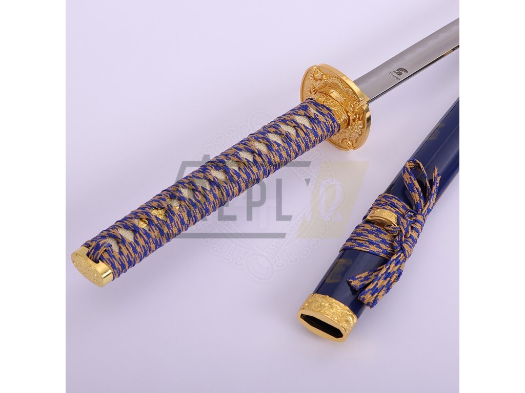 Modro-zlatá Katana s pochvouUpozornění: Toto je pouze dekorativní předmět, nevhodný k reálnému použití!