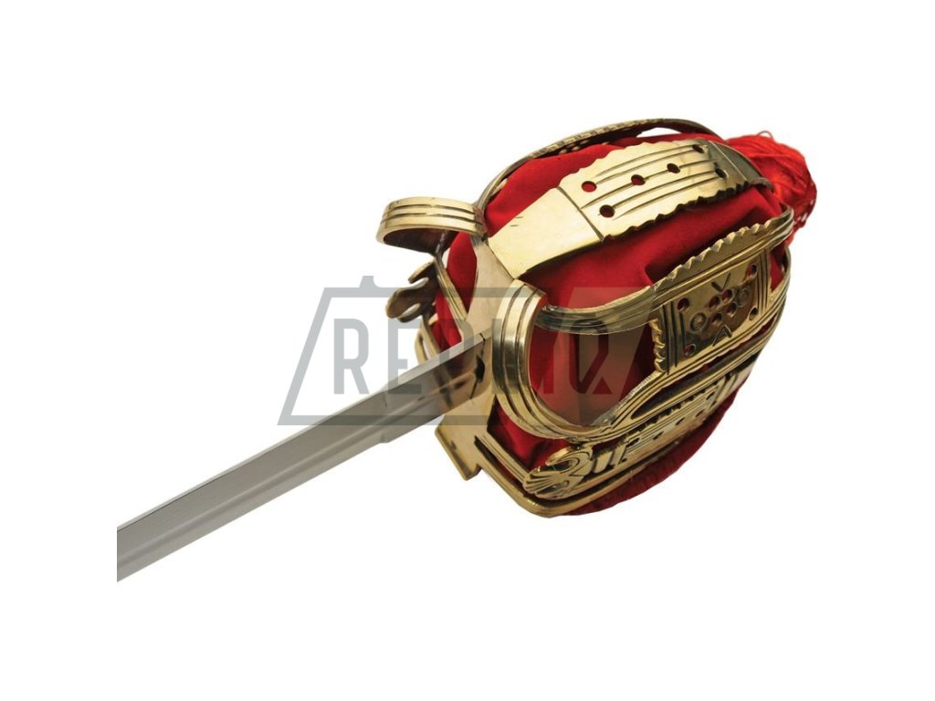 Replika skotského meče vyrobená z odolné nerezové oceli. Čepel se ztupeným ostřím je dlouhá 91,44 cm. Meč disponuje rozměrnou záštitou s mosaznou úpravou povrchu a ozdobnými třásněmi. K meči je dodávána černá kožená pochva.