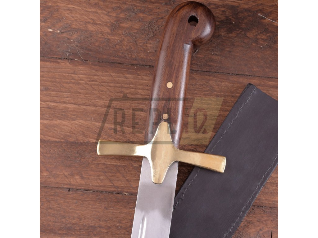 Turecký osmanská šavle s pochvouTato šavle má klasickou, zakřivenou čepel se žlábkem vyrobenou z pružinové oceli EN45. Čepel má ztenčenou hranu, není však ostrá. Mírně zakřivená záštita je vyrobena z mosazi. Jemně zpracovaná rukojeť včetně hlavice je vyrobena z jednoho kusu tmavého dřeva a pochva je z černé kůže.