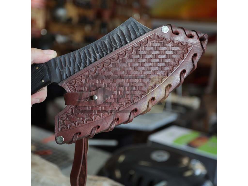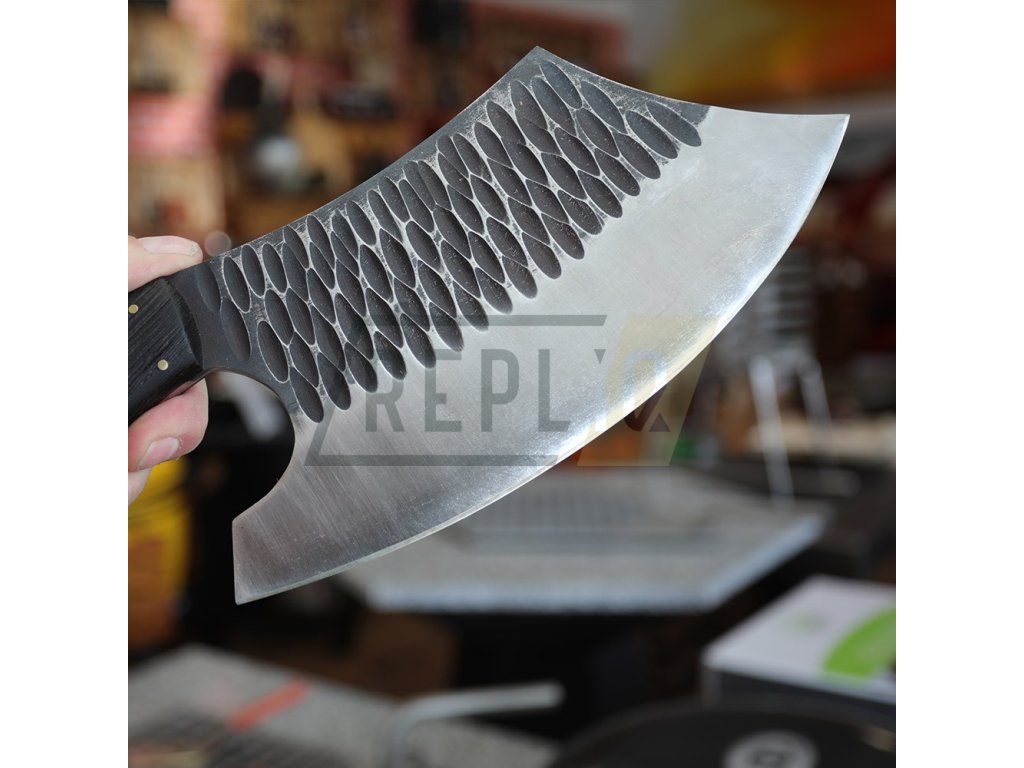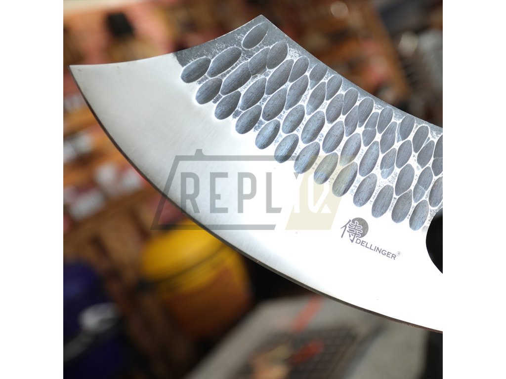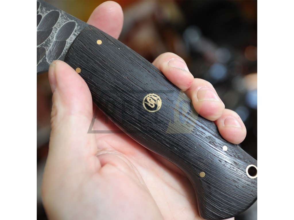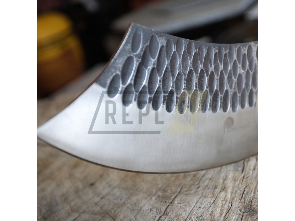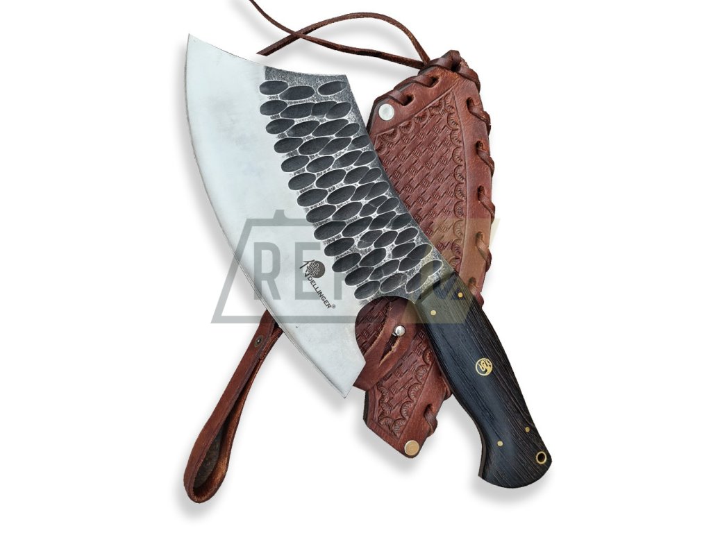 Tento jedinečný nůž ve tvaru sekáčku je zaslíben BBQ a grilování. Razantní ostří nezastaví ani menší kosti. Zaoblená čepel nože umožňuje houpavé řezy, díky kterým bude krájení ryb, masa a bylinek jednodušší. Tento nůž je kovaný z nástrojové oceli D2. Rukojeť je vyrobena z kartáčovaného dřeva Wenge. Po přesném a pečlivém vytvrzení, temperování a žíhání dosahuje tvrdosti HRC 60-62. Jeho ostří jen tak něco nepoškodí. Budete chtít ukázat každé návštěvě jaký kus překrásného železa se skrývá ve vaší kuchyni.