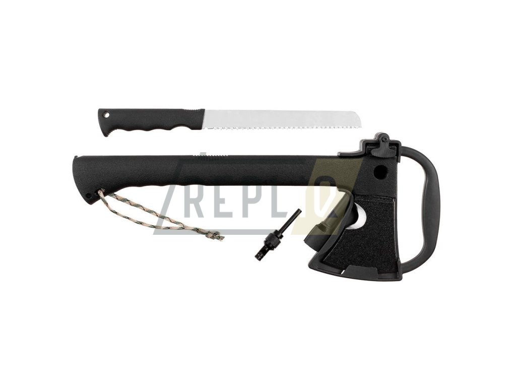 Sekera SURVIVAL s pilkou a křesadlem včetně plastového pouzdra