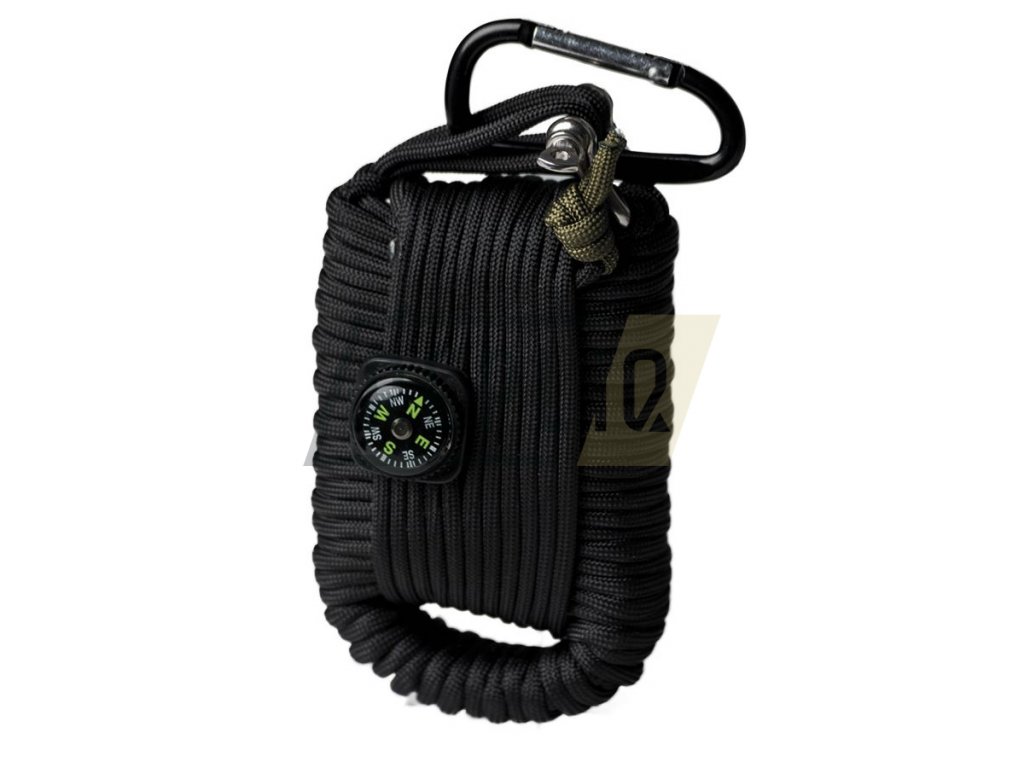 Originální sada pro přežití, která vám může pomoci v nouzi. Najdete v ní sadu na rybaření, na rozdělání ohně, signalizaci, včetně polyesterového paracordu. Vše je zabalené v praktickém balíčku, ze kterého kouká kovová karabinka, takže sadu můžete připevnit na batoh, vestu apod.