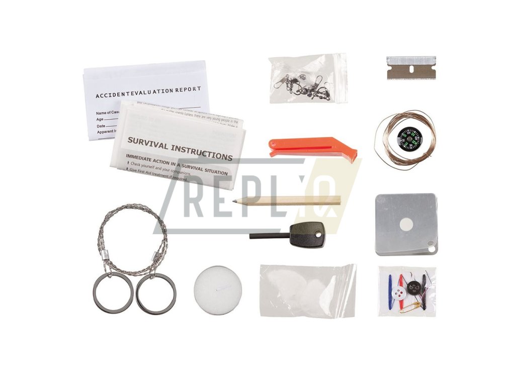 Malá vodotěsná odolná plastová krabička se základním vybavením pro přežití tzv.KPZ.