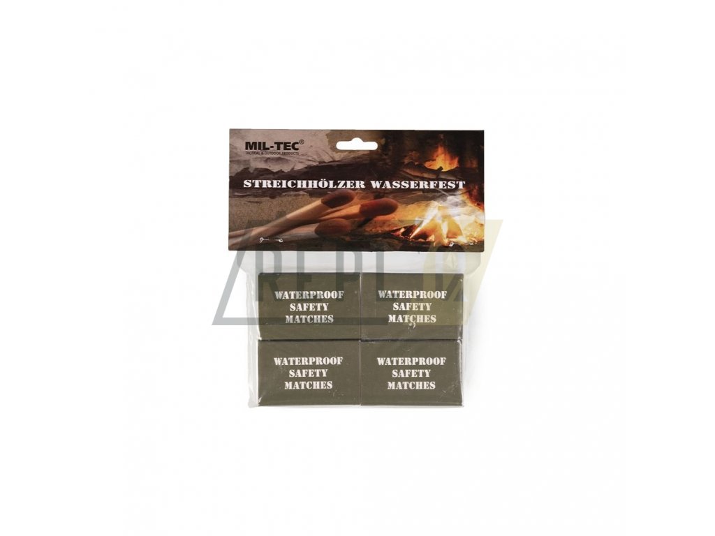 Speciální voděodolné zápalky, čtyři krabičky sirek v balení.