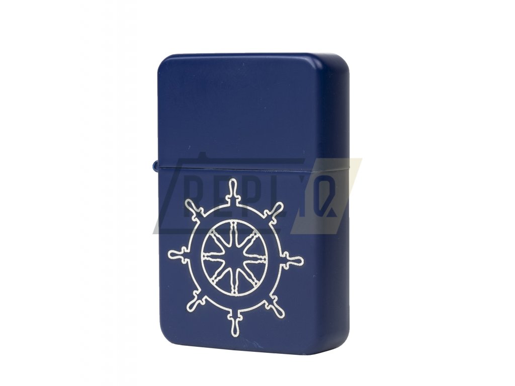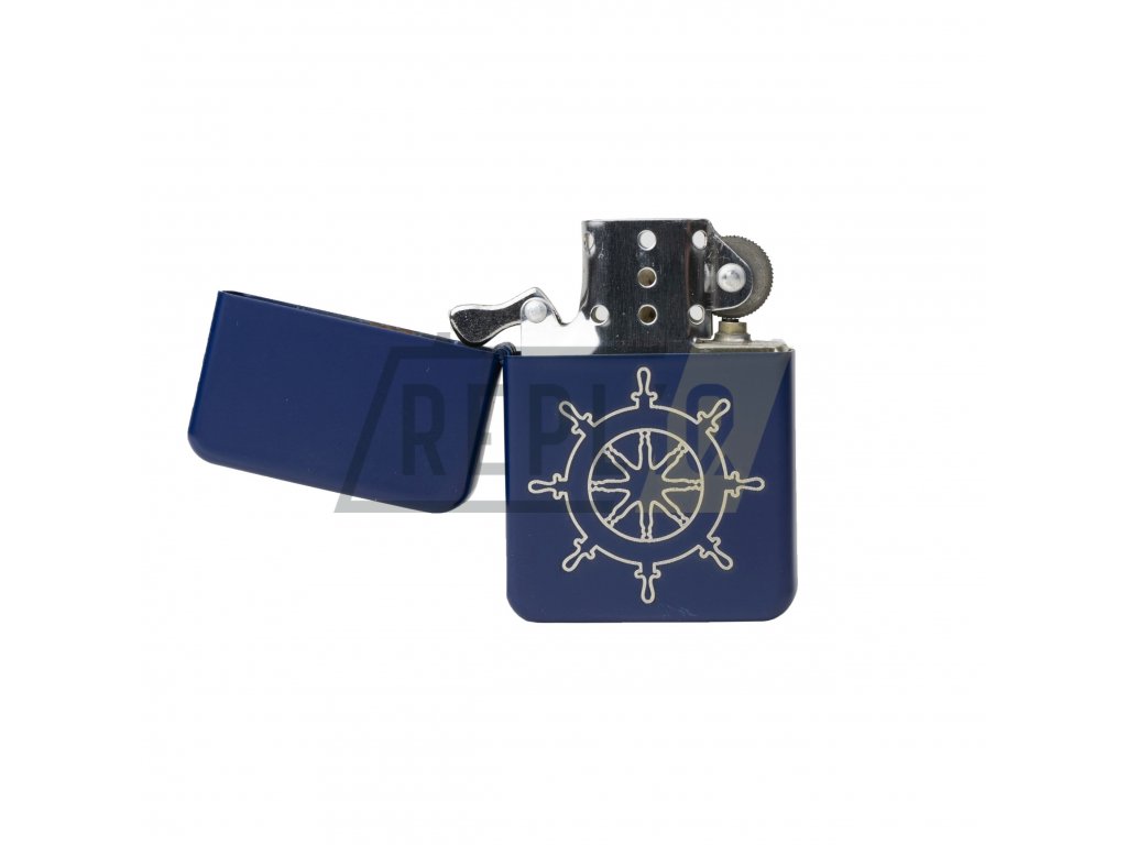 Matně modrý zapalovač s vygravírovaným kormidlem uprostřed. Kvalitní provedení, obrázek se jen tak ze zapalovače neošoupe. Zadní strana bez obrázku.