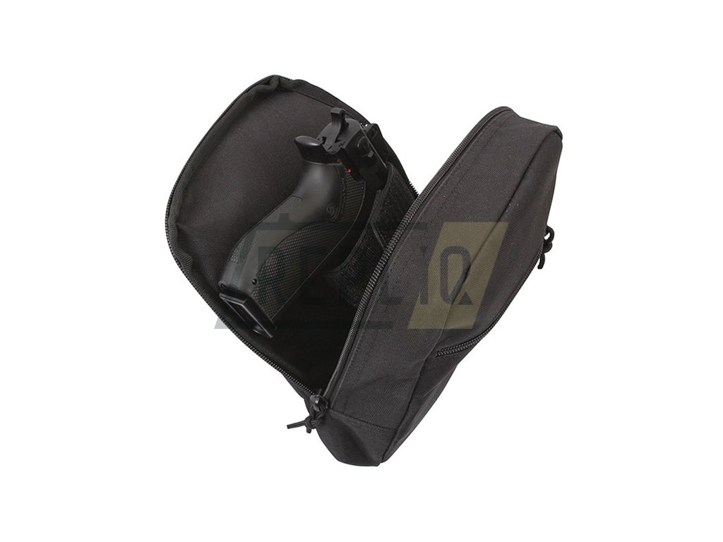 Zbraňové pouzdro, které vám umožňuje bezpečné skryté nošení. S MOLLE úchyty pro připevnění na vestu/batoh, zápínání na zip, venkovní kapsa na zip. Rozměr: 24 x 16,5 x 4 cm, materiál 600D polyester.