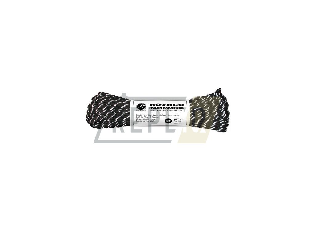 Šňůra PARACORD nylon 550LB ø 4 mm / 30 m ČERNÁ s refelxními nitkami