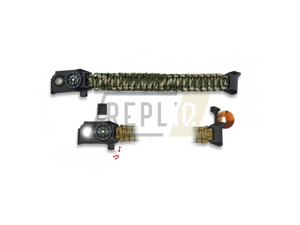 Lehká paracordová šňůra s kompasem, nouzovou píšťalkou, malou svítilnou a nouzové křesadlo. Šnůra má délku 24,5 cm a je vyrobená z odolného nylonu.