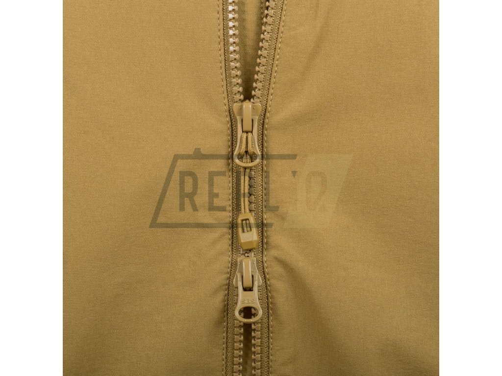 Bunda se zapíná pomocí robustního dvoucestného centrálního zipu, který je v horní části zakončen do chrániče krku. Rukávy jsou v oblasti zápěstí zakončeny pruženkou a najdete na nich velké panely suchého zipu pro vaše VELCRO nášivky. Na bundě naleznete dvě prostorné kapsy s extra širokými vstupy. Ty bez problémů pojmou i ruce v rukavicích a zapínají se pomocí zipů opatřených táhly.
