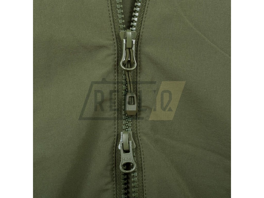 Bunda se zapíná pomocí robustního dvoucestného centrálního zipu, který je v horní části zakončen do chrániče krku. Rukávy jsou v oblasti zápěstí zakončeny pruženkou a najdete na nich velké panely suchého zipu pro vaše VELCRO nášivky. Na bundě naleznete dvě prostorné kapsy s extra širokými vstupy. Ty bez problémů pojmou i ruce v rukavicích a zapínají se pomocí zipů opatřených táhly.