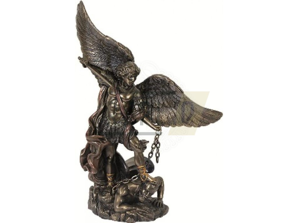 Archanděl Michael s mečem, soškaJe strážným andělem Izraele a církve, ale i vojáků a policistů. Zobrazován bývá v šatě červeném nebo zeleném a v zářivém brnění, v ruce většinou drží meč nebo kopí. Chcete-li mít svého anděla strážného v podobě Michaela stále nablízku, jistě budete nadšeni z naší sošky, kterou můžete umístit kdekoliv doma i v zahradě.