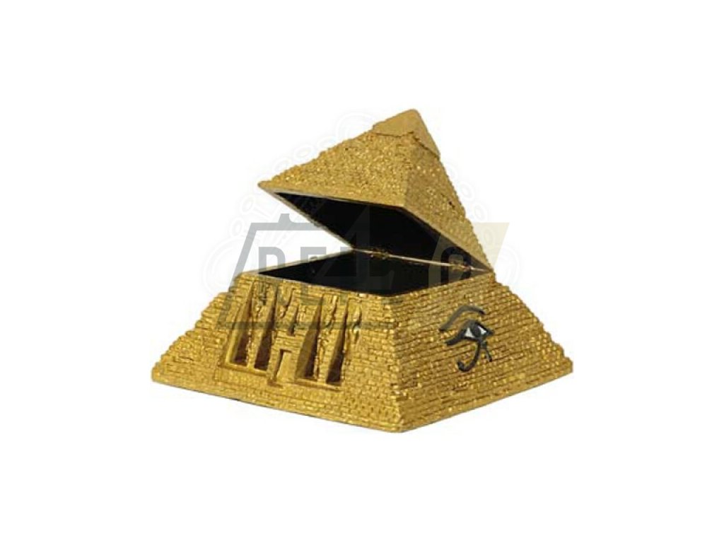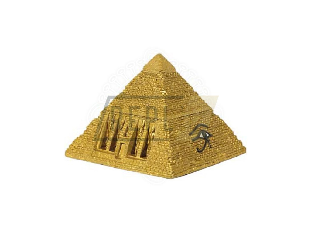 Soška pyramidy s úložným prostoremEgyptské pyramidy se ve starověkém Egyptě budovaly po dlouhé období, přibližně 1 500 let, jako hrobky králů, jejich významných manželek a matek. Nejznámější z pyramid vznikly za vlády 4. dynastie. Jedná se o pyramidy: Chufuova, Rachefova a Menkaureova.