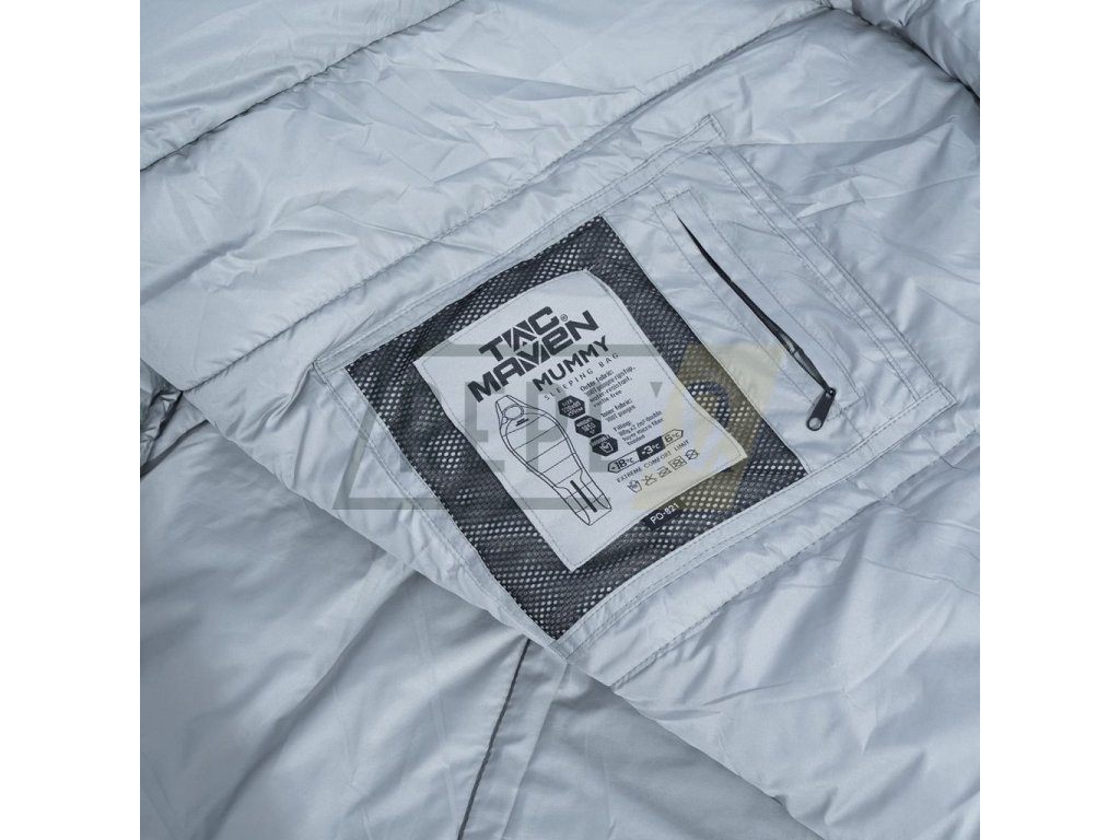 Mumiový spacák vyrobený z odolného 300T pongee rip-stop materiálu. Výplň tvoří dvě vrstvy polyesterového dutého vlákna, které je pro optimální distribuci segmentově dělené napříč celou konstrukcí. Na spacáku naleznete kvalitní YKK zipy (hlavní zip je dvoucestný) s funkcí Anti-stuck, která zabraňuje zadrhávání zipu a minimalizuje tak možnost nechtěného poškození okolní tkaniny. Samozřejmostí je nastavitelný límec s možností uzavření pomocí suchého zipu. Spacák je opatřen popruhy pro fixaci k nafukovacím karimatkám či polním postelím. Dodáváno s kompresním pytlem z Oxford nylonu.