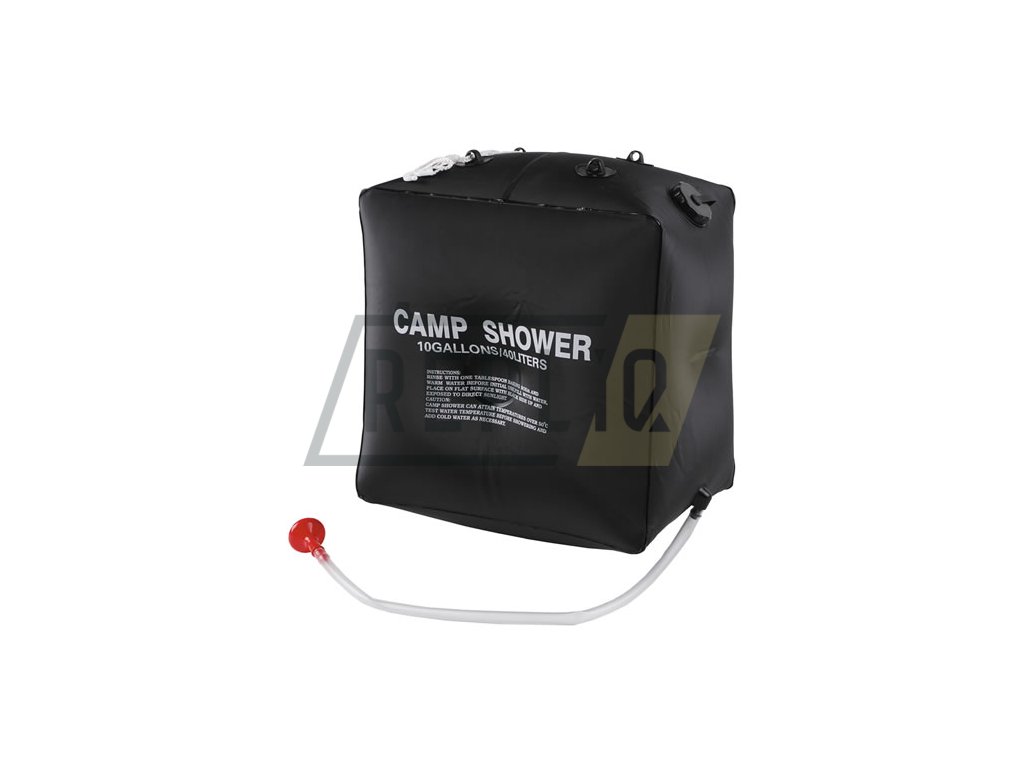 Praktická a skladná solární sprcha. Ohřev vody zajistí černá nádoba a sluneční paprsky.