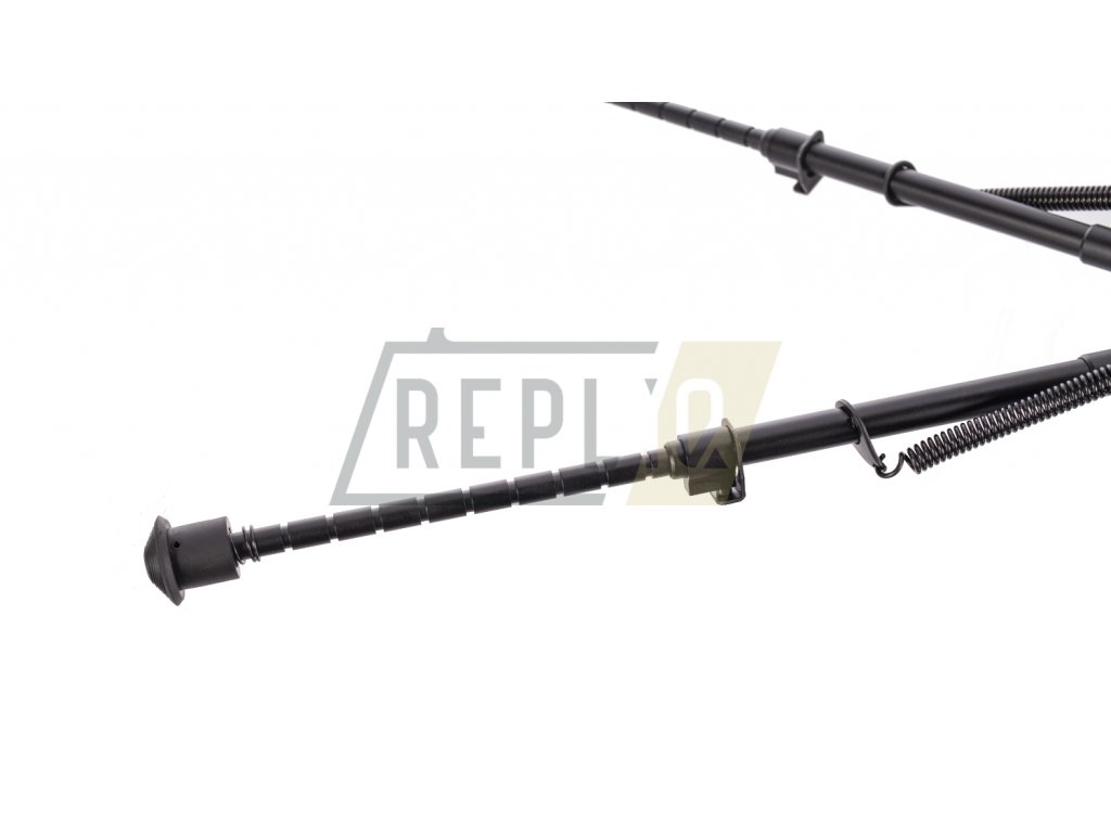 Jde o klasický bipod se dvěma polohami, tedy rovnoběžnou a kolmou na hlaveň. Samovolnému posunu nožek během střelby brání silné kovové pružiny podél nožek. Puška by se vám tedy neměla hnout ani o píď. Nožku nachystáte do správné polohy tahem směrem od zbraně a zajistíte opačným pohybem. O stabilitu zbraně se starají rovněž gumové koncovky nožek, které vám neujedou ani na hladkém povrchu.
