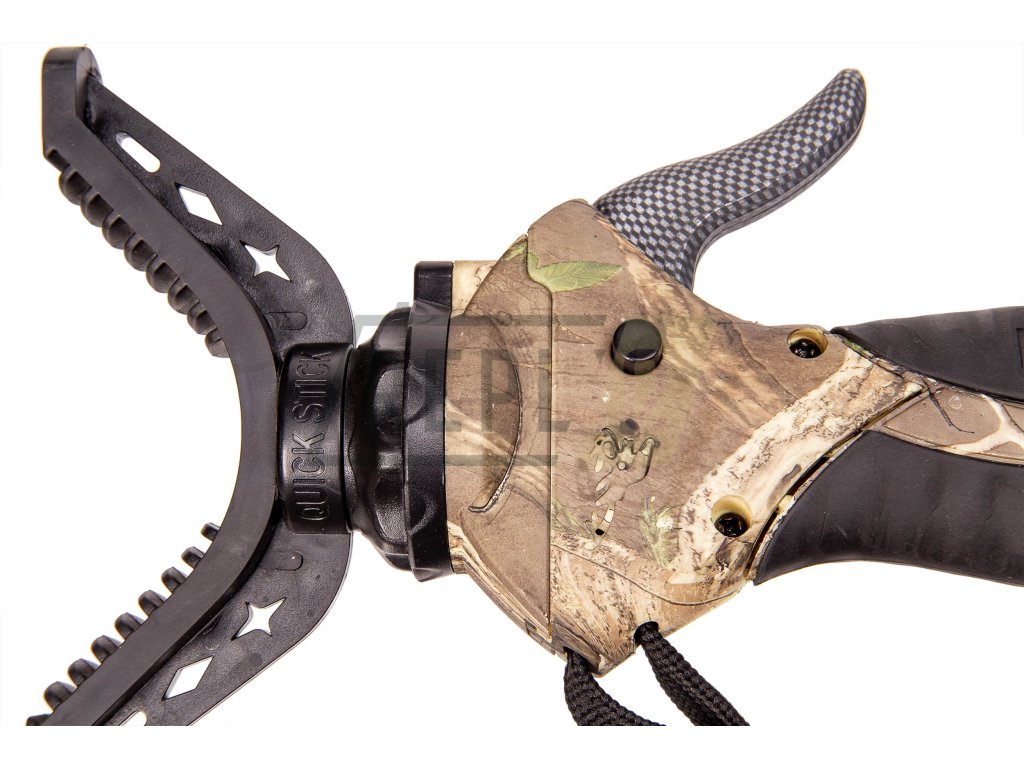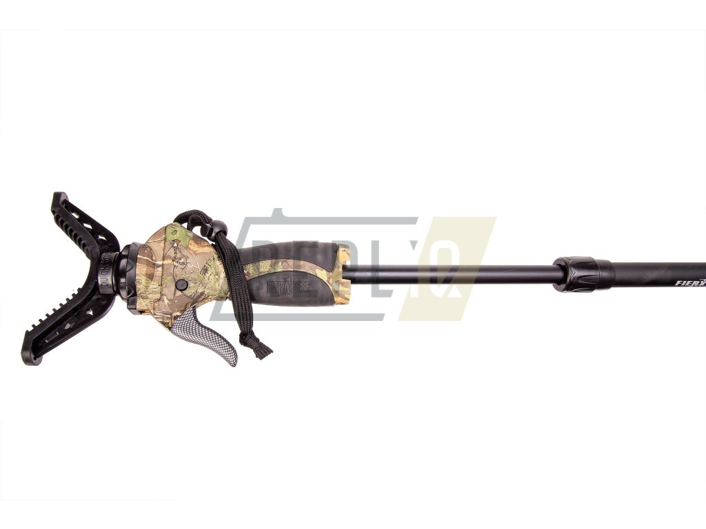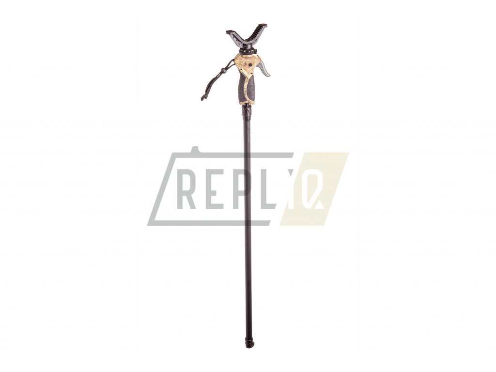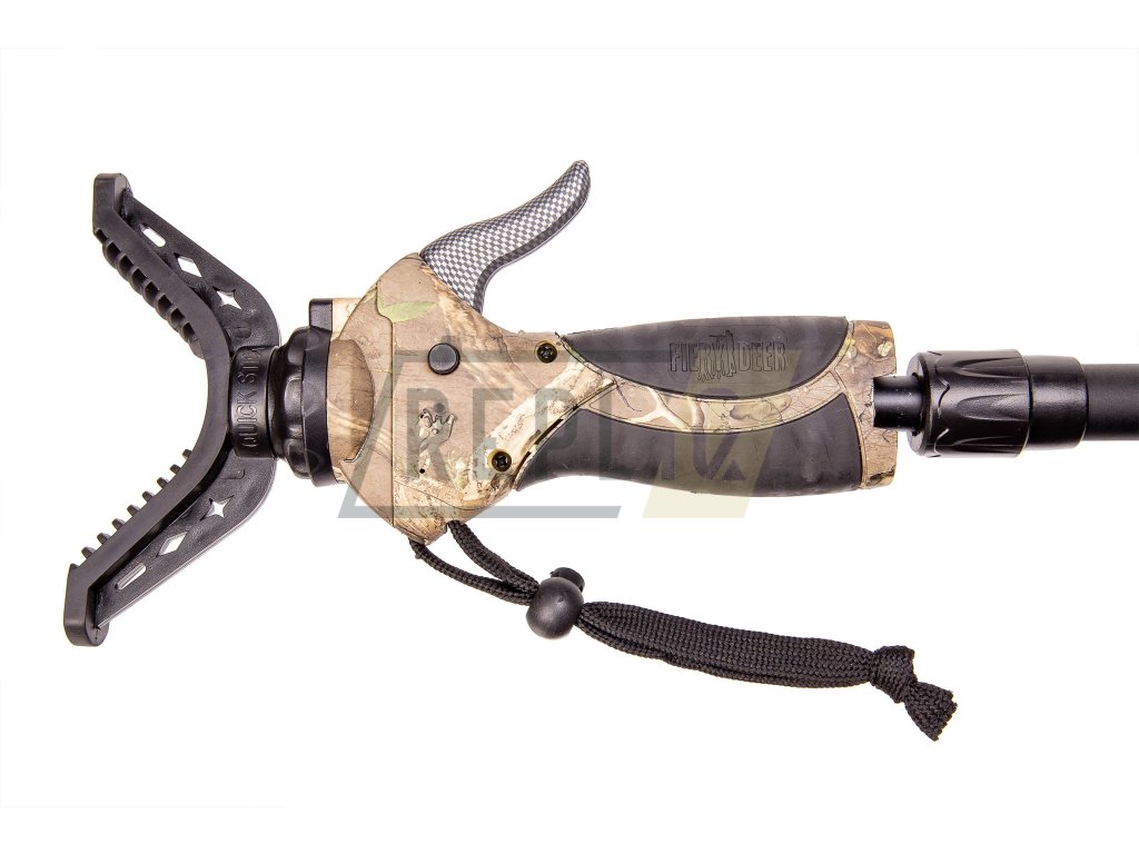 Hlavice ve tvaru písmene "V" je otočná o 360° a lze ji v případě potřeby snadno sundat. Samozřejmostí je integrovaný zámek. Tiché a plynulé nastavení monopodu jednou rukou umožňuje lovci soustředit se pouze na kořist. Na tvarované rukojeti je protiskluzová úprava, můžete se tedy spolehnout na jistý úchop i ve vypjatých situacích.