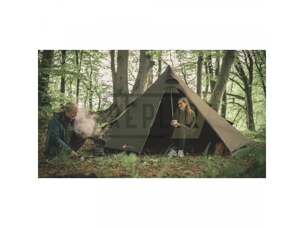 Všestranné polyesterové týpí Green Cone PRS má velkou světlou výšku, velkou verandu a vnitřní prostor pro čtyři osoby. Je vybaveno posunutou středovou tyčí pro snadný přístup. Ta zvedá vnější část od země a vytváří mezeru, která napomáhá proudění vzduchu. Chcete-li ušetřit hmotnost, vyjměte vnitřní část a nastavte teleskopickou středovou tyč tak, aby vnější část ležela blízko země - ideální bivakovací stan. Malé rohové tyčky jsou všité do tmavého vnitřku a vytvářejí stěnu, která přidává další využitelný prostor.