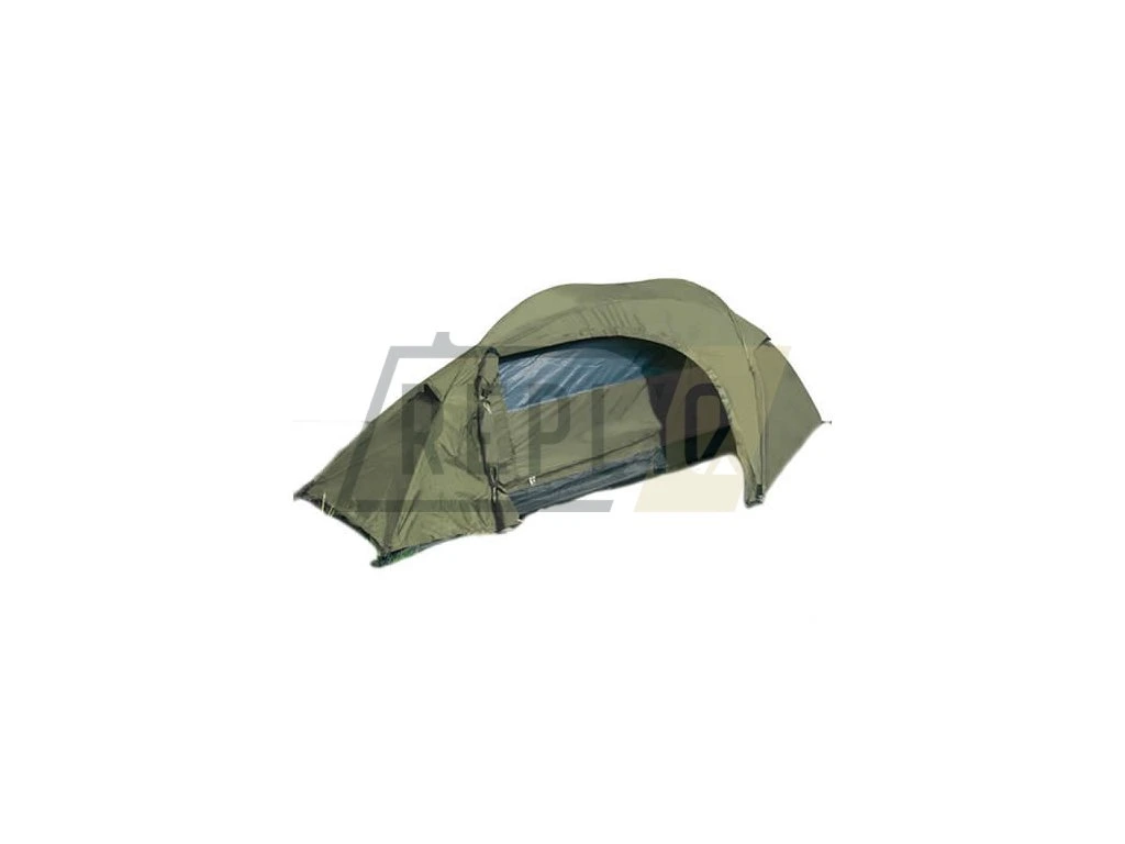 Malý jednomužný dvouplášťový stan v zeleném provedení.