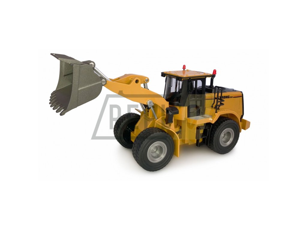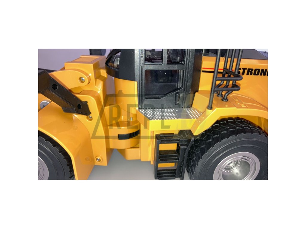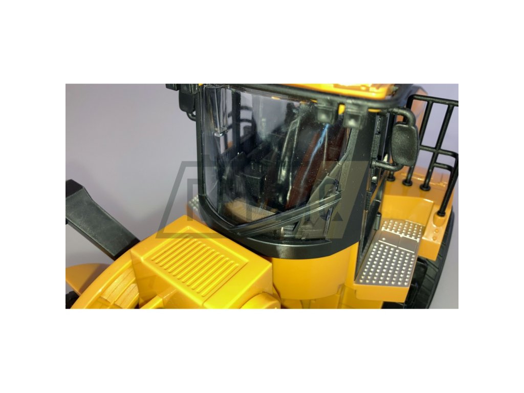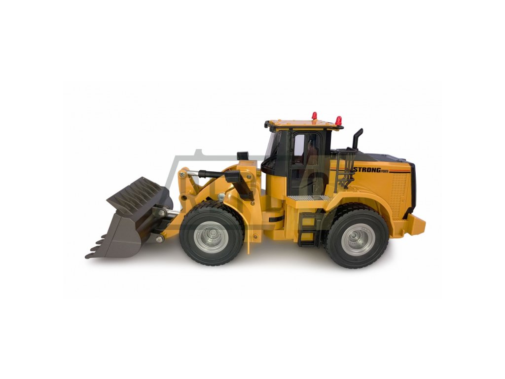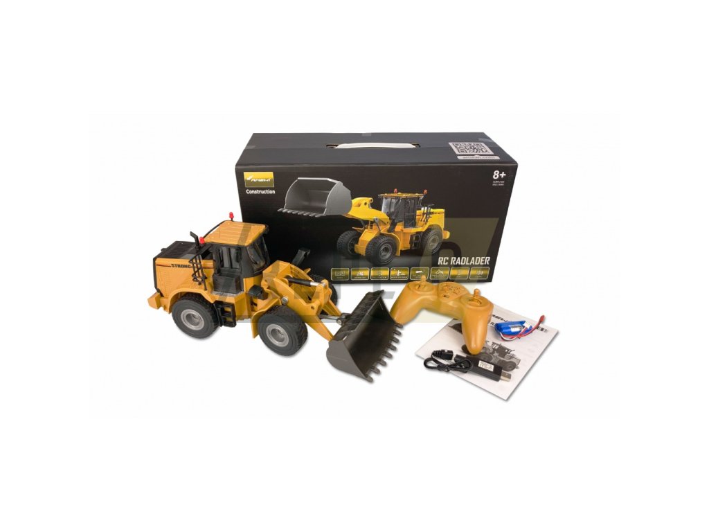 Malý RC kolový nakladač v měřítku 1:24 se všemi běžnými funkcemi jako je vpřed/vzad, vpravo/vlevo, zdvih/dolů lžíce – také zvuk a světlo lze spínat pomocí vysílače (zapnout/vypnout). Model má pohon zadních kol 2WD s výkonným elektromotorem a rychlým kloubovým řízením, které umožňuje kolovému nakladači otáčet se uprostřed doprava a doleva a měnit směr jízdy. Hlavní rameno s lžící poskytuje dostatečný výkon i pro těžší zatížení. S gumovými pneumatikami pro optimální pohon v terénu a konstrukcí odolnou proti stříkající vodě je toto vozidlo plně vhodné pro venkovní použití. Rozsah dodávky již zahrnuje vše potřebné pro provoz modelu – v balení nejsou pouze baterie pro dálkové ovládání 2,4GHz (2x 1,5V AA baterie). Přiložená 7.4V 600mAh Li-Ion baterie s BEC konektorem lze nabíjet v krátkém čase pomocí dodaného nabíjecího kabelu USB. Díky univerzální vestavěné připojovací zástrčce (JST–BEC) se do modelu vejde i řada dalších baterií. Kolový nakladač, dodávaný ve vysoce kvalitním přepravním boxu s krásným potiskem a polystyrenovou vložkou.