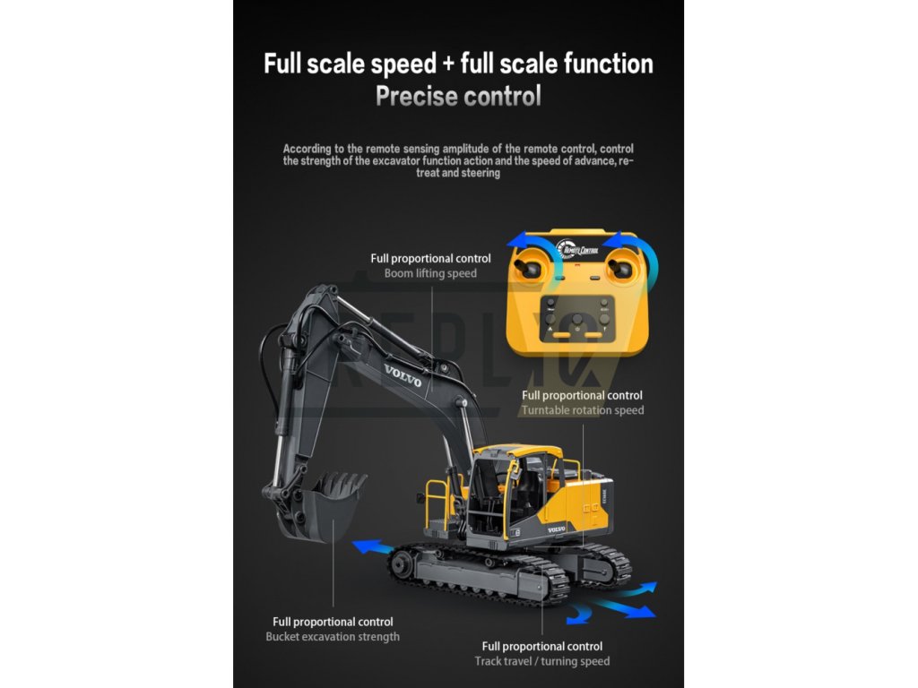 DoubleE RC bagr VOLVO EC160E 1:16 17 kanálů LED zvuky RTR sada app na programování
