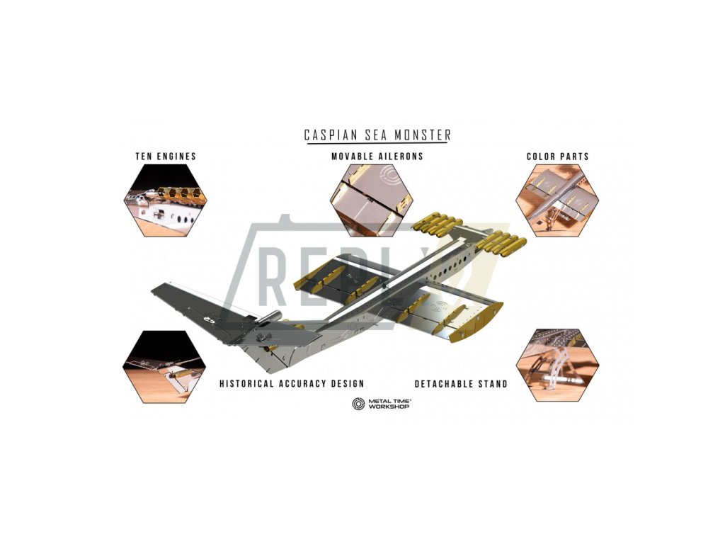 Caspian Sea Monster byl testován na Kaspickém moři a jeho design kombinuje prvky kluzáku, letadla a lodi. Tento unikátní model nabízí nejen estetický zážitek, ale také edukativní hodnotu, jelikož poskytuje detailní vhled do technologických inovací své doby.