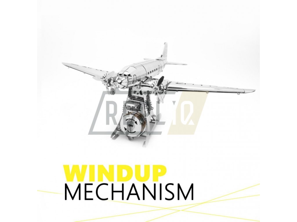 S Remerkable Douglas DC-3 získáte nejen esteticky působivý model, ale i funkční stroj s navíjecím mechanismem, který při aktivaci otáčí vrtulemi, připomínající chod skutečného letounu.