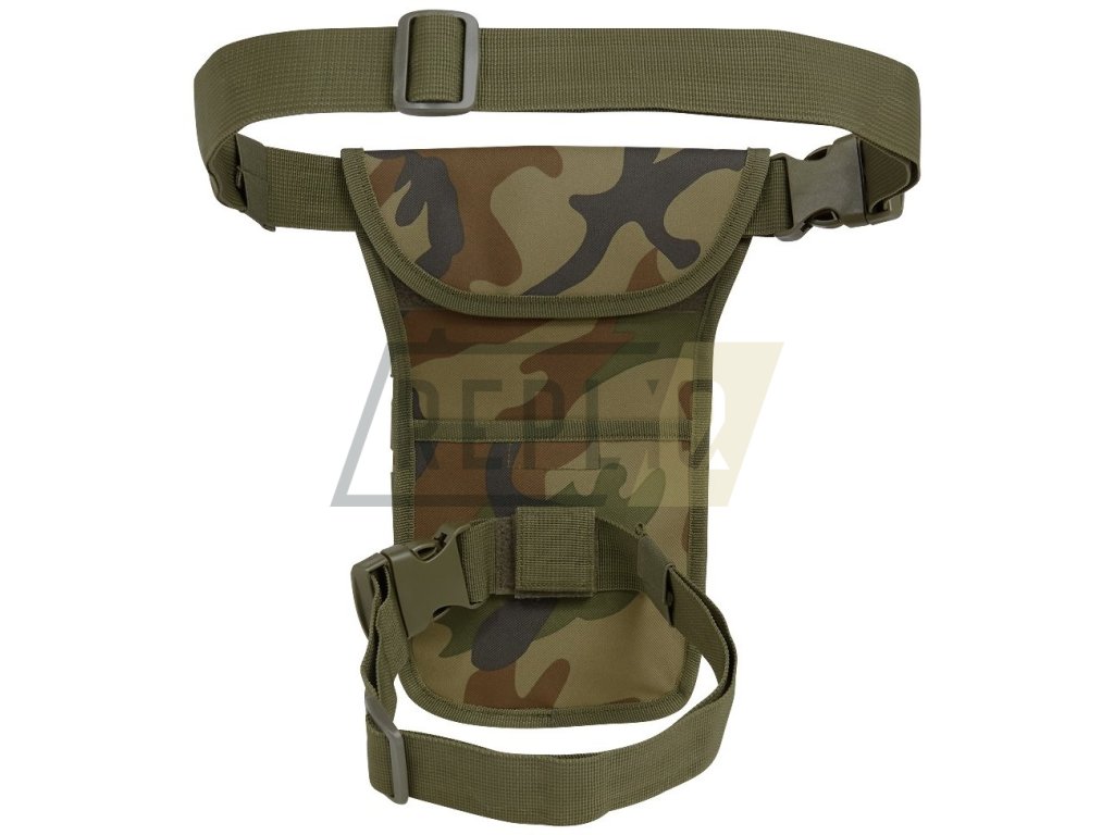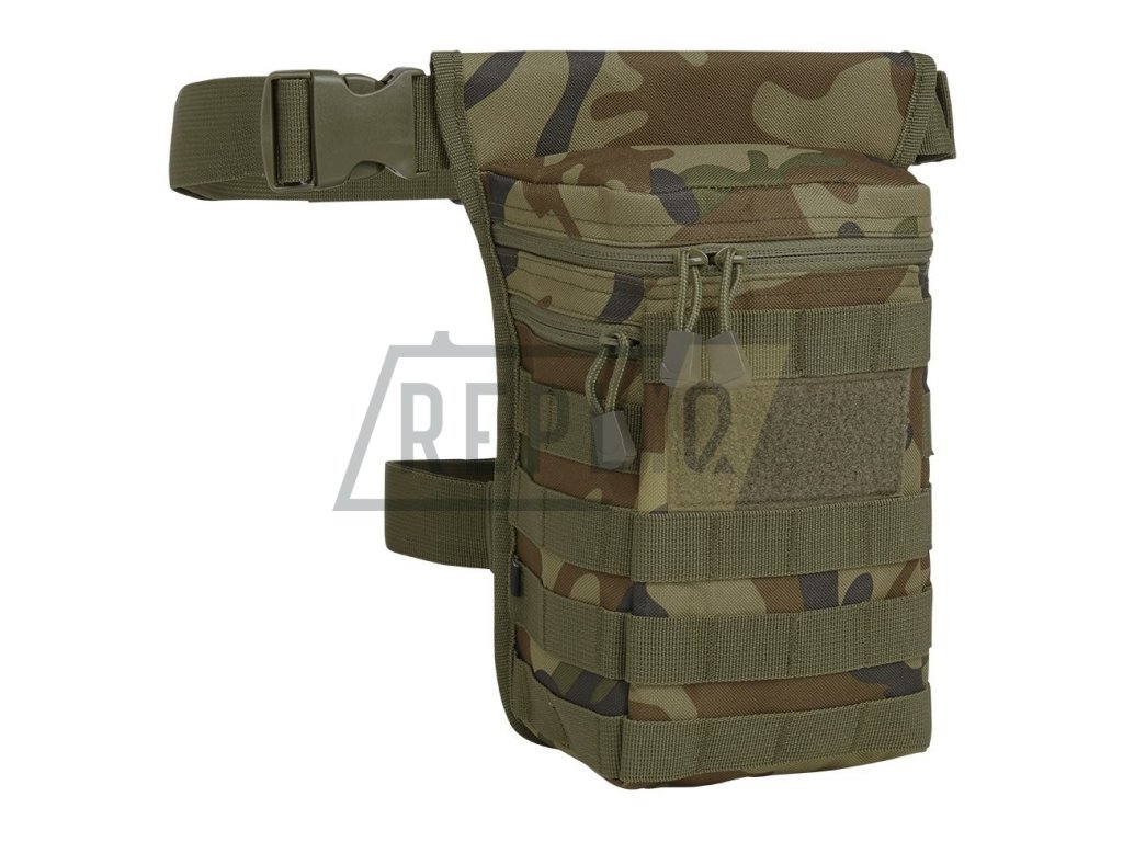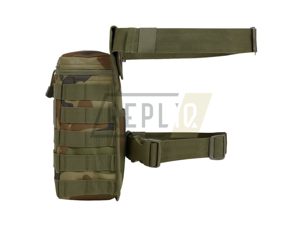 Univerzální stehenní pouzdro vyrobené z odolného polyesteru 600D. Na vnější straně pouzdra naleznete velké množství MOLLE/PALS vazby, kterou můžete využít k fixaci dodatečného vybavení a široký VELCRO panel pro vaše nášivky. Na pravém boku se nachází malá plochá kapsa uzavíraná zipem. Hlavní úložný prostor je přístupný skrze dvoucestný zip. Poslední kapsa je na zadní straně.