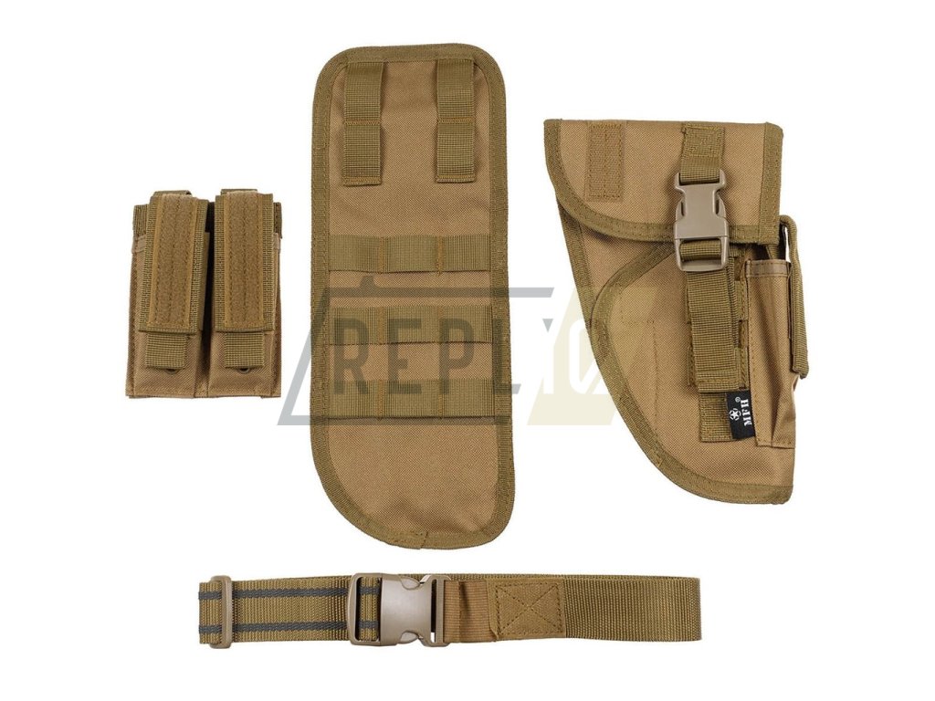 Pouzdro stehenní Tactical na pistol a zásobníky pravé COYOTE