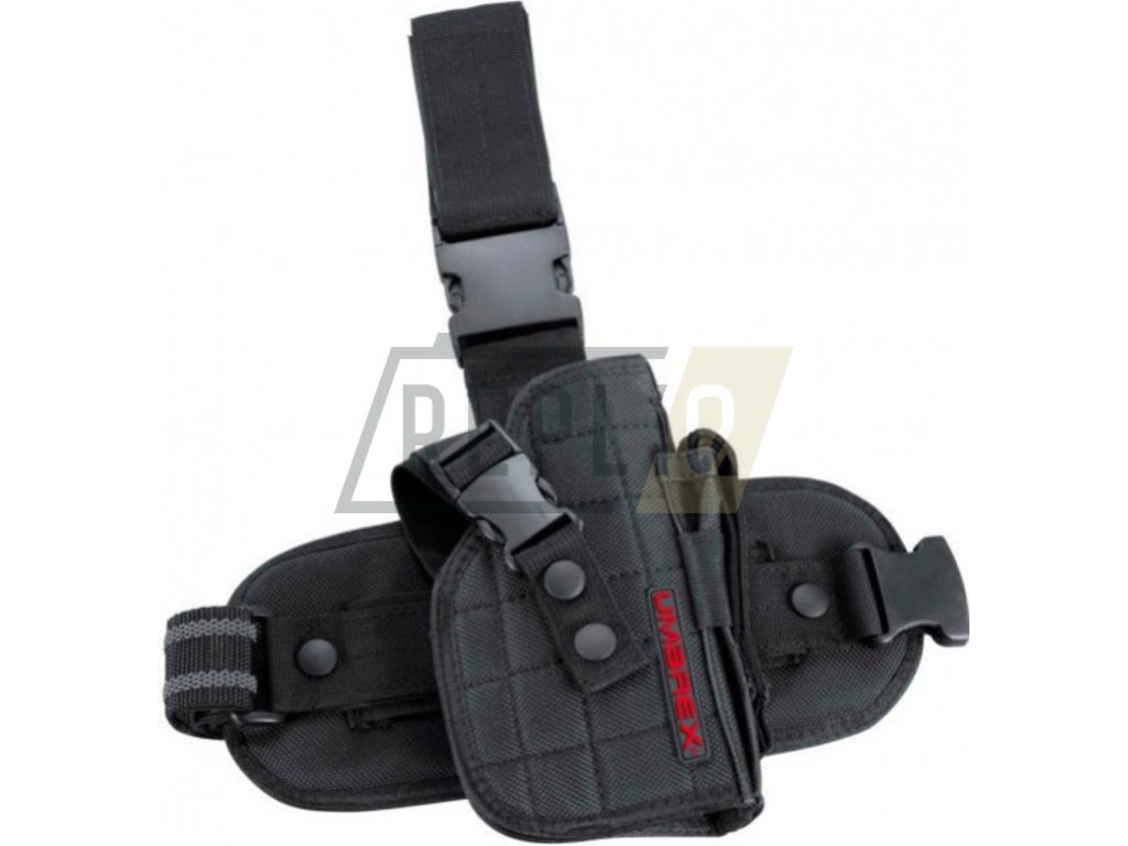 Taktické stehenní pouzdro od německého výrobce Umarex pro pistole s větším rámem (Glock, Beretta 92, USP, P99, ...). Je vyrobeno z vysoce odolného nylonu a můžete si ho přichytit na nohu pomocí nastavitelného stehenního popruhu.