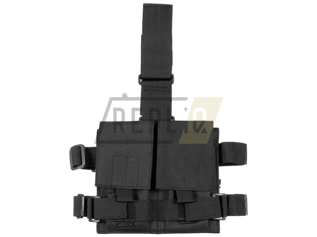 Stehenní taktické pouzdro se dvěma sumkami na zásobníky. Černé provedení.