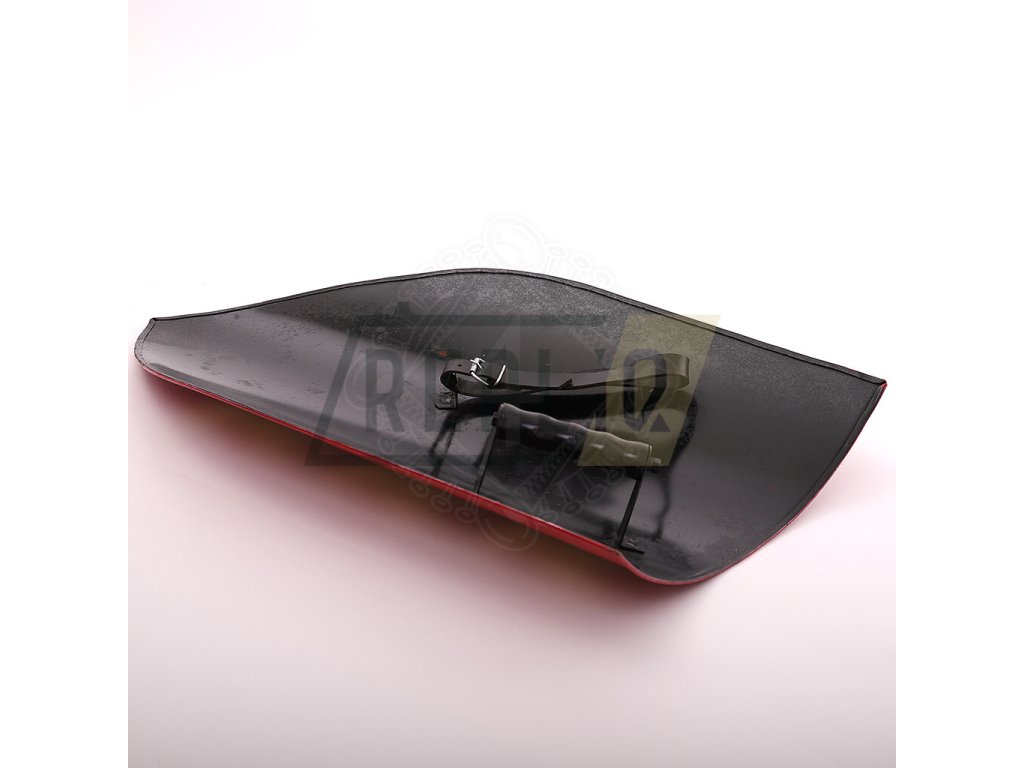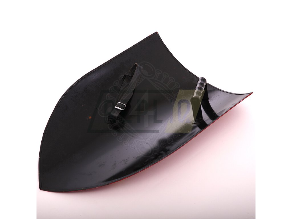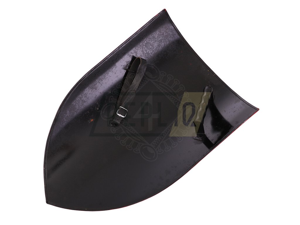 Zadní strana štítu je černě nastříkaná. Na zadní stranu je navařené rukojeť s dřevěným madlem.