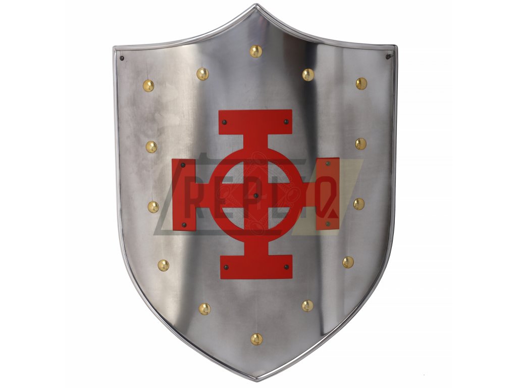 Kovový štít s keltským rudým křížemUpozornění: Toto je pouze dekorativní předmět, nevhodný k reálnému použití!