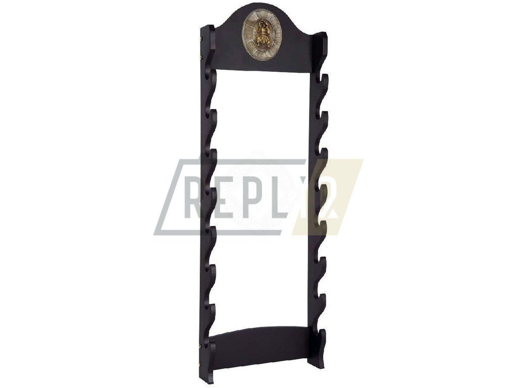 Nástěnný držák na 8 samurajských mečů s emblémem SamurajeVýrobek z mořeného dřeva.