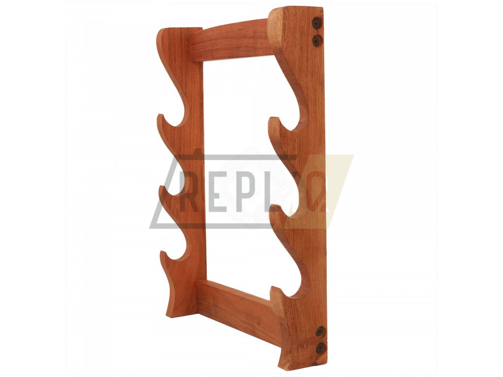 Nástěnný držák na tři meče nebo jiné zbraně34x45cm je perfektní velikost, která vystaví na odiv vaše meče v jejich nejlepším světle! Je něco lepšího, než přivítat dobré přátele na něco dobrého do prostředí obklopené Vašimi oblíbenými meči hrdě vystavenými na elegantním dřevěném stojany?