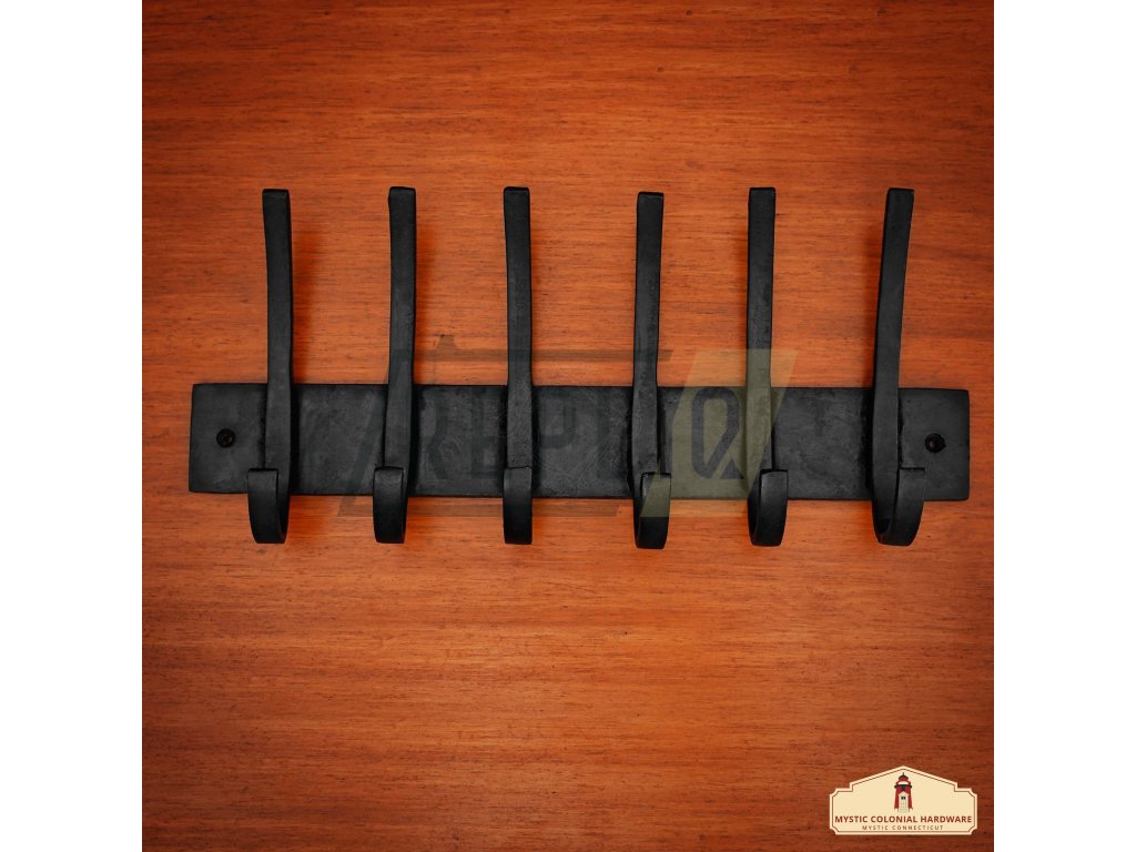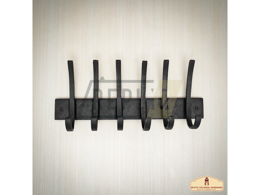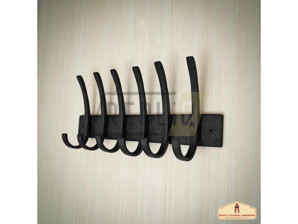 Ocelový nástěnný věšák se 6 háčky, 33x15 cmRustikální nástěnné háčky z lité oceli, odolné retro háčky na zavěšení kabátů, tašek, ručníků, županů, klobouků a dalších věcí.