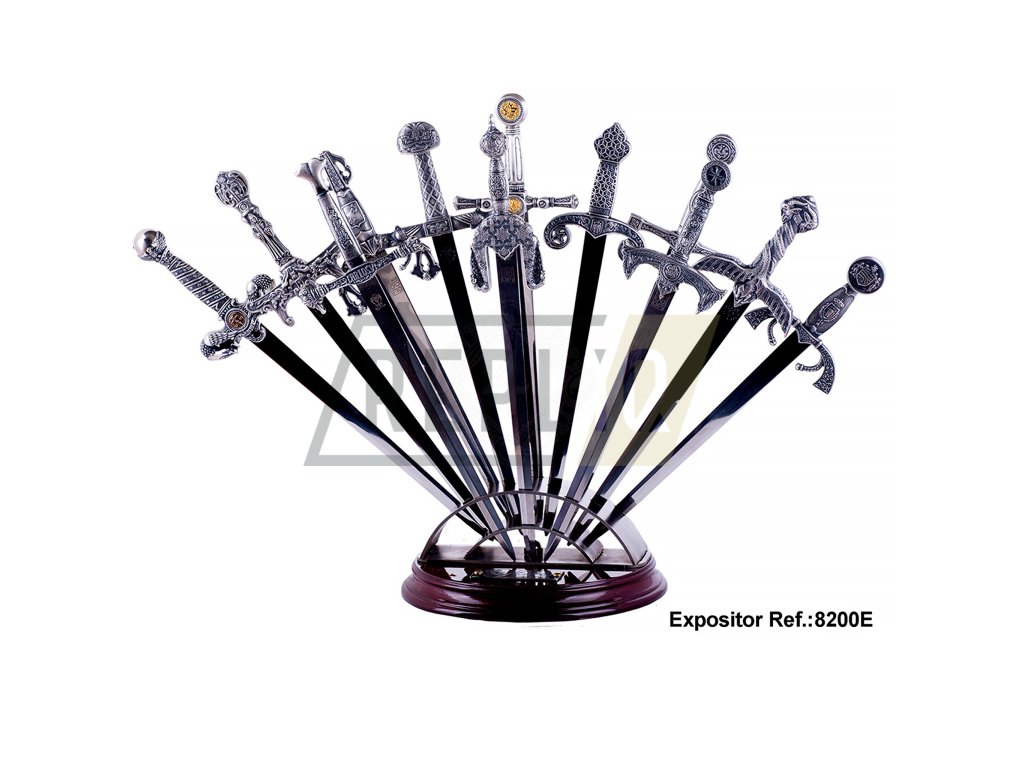 Stojan na 12 mini mečů - otvíráků dopisůStojan s dřevěnou základnou