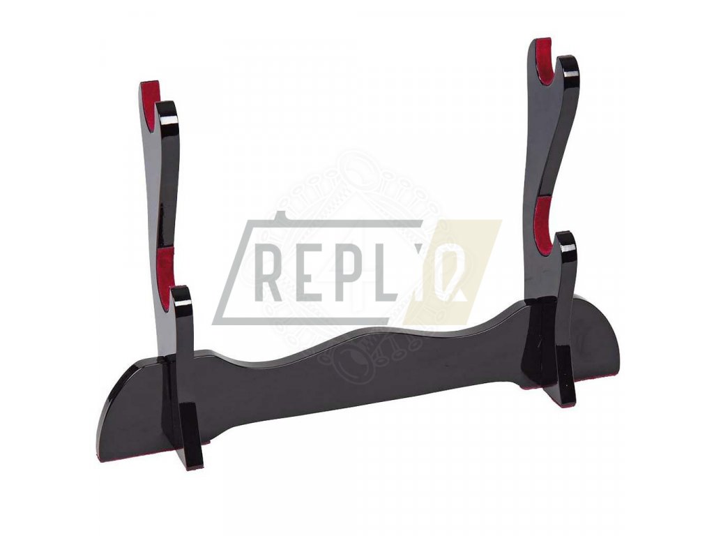 Stojan na 2 samurajské meče, stolní se sametovou vložkouStolní stojan na 2 samurajské meče je pokryt sametovou vložkou a má vysoký lesk.