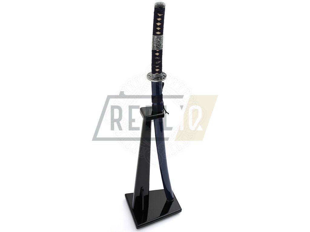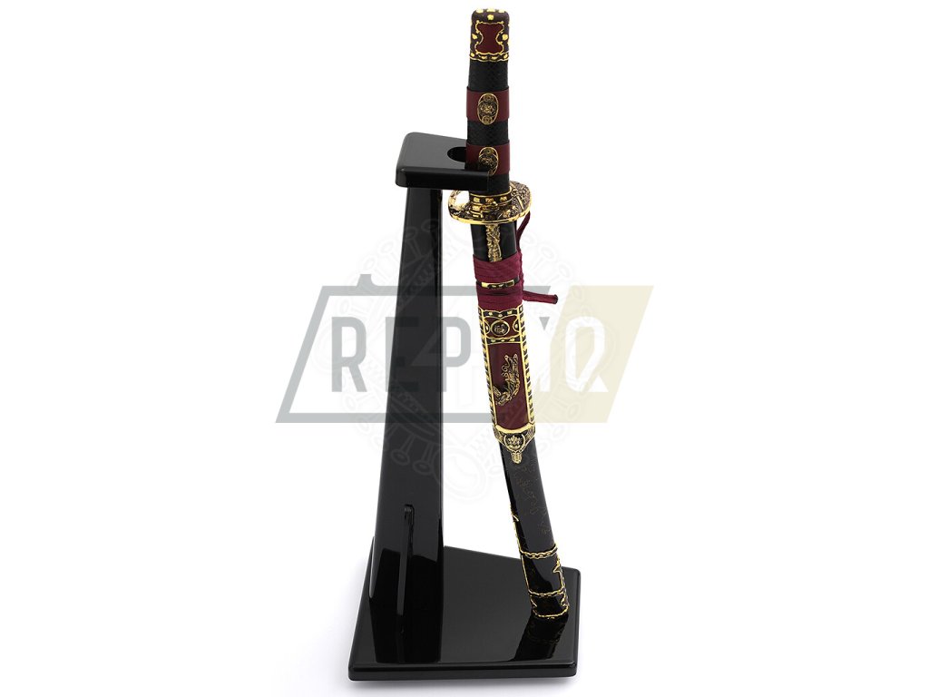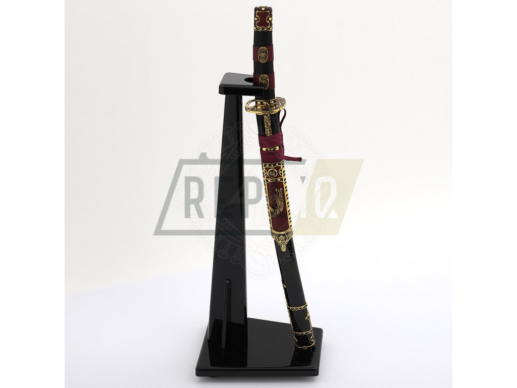 Černý lakovaný stojan na katanu nebo tachi, vertikální