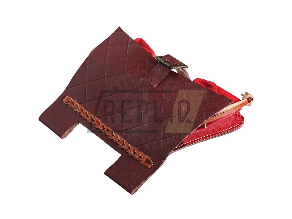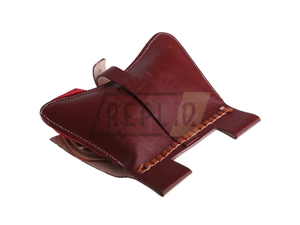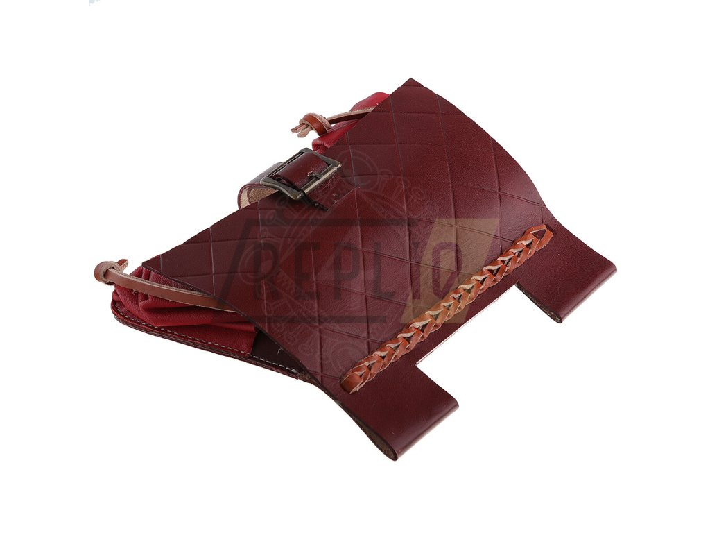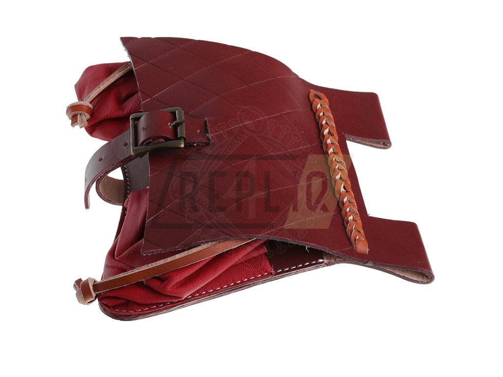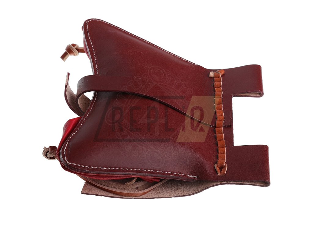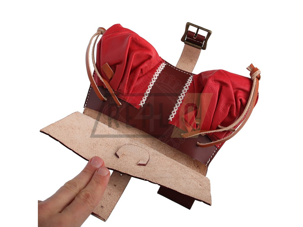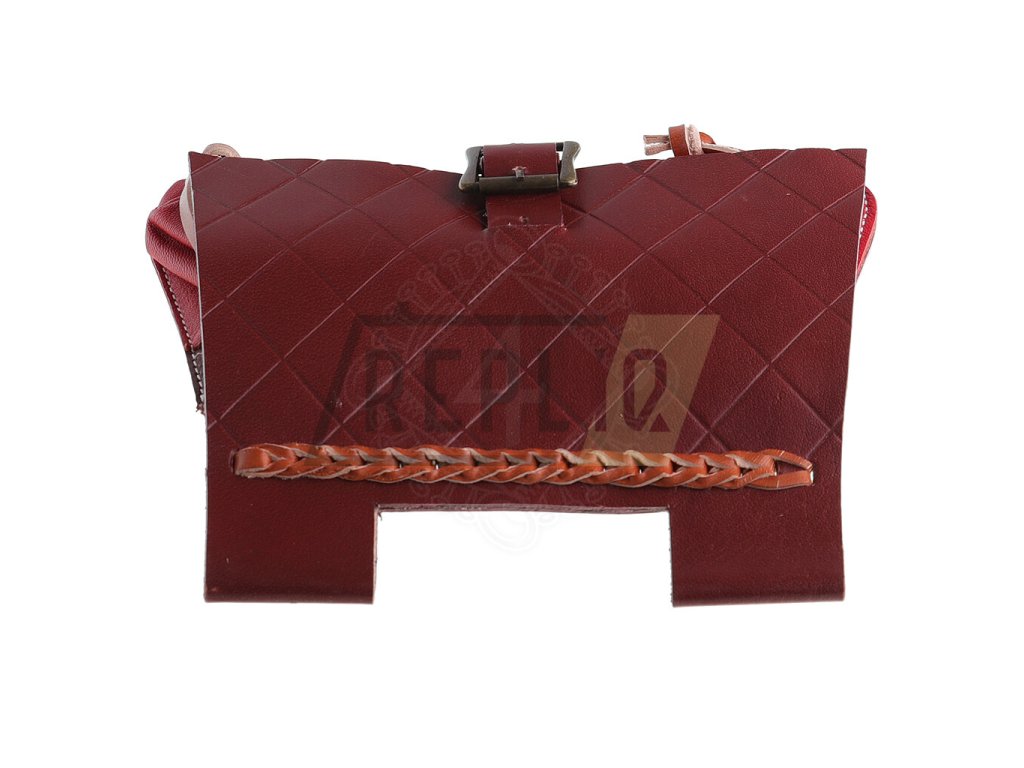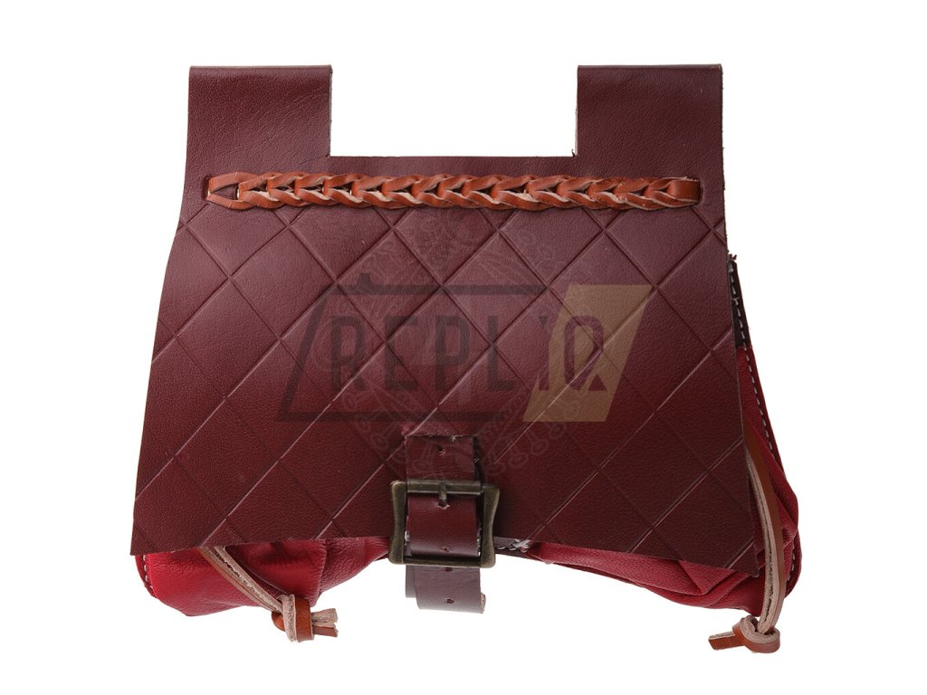 Středověká opasková brašna s integrovanými měšciOpasková brašna je vyrobena z hnědé a červeně barvené vysoce kvalitní hovězí kůže.